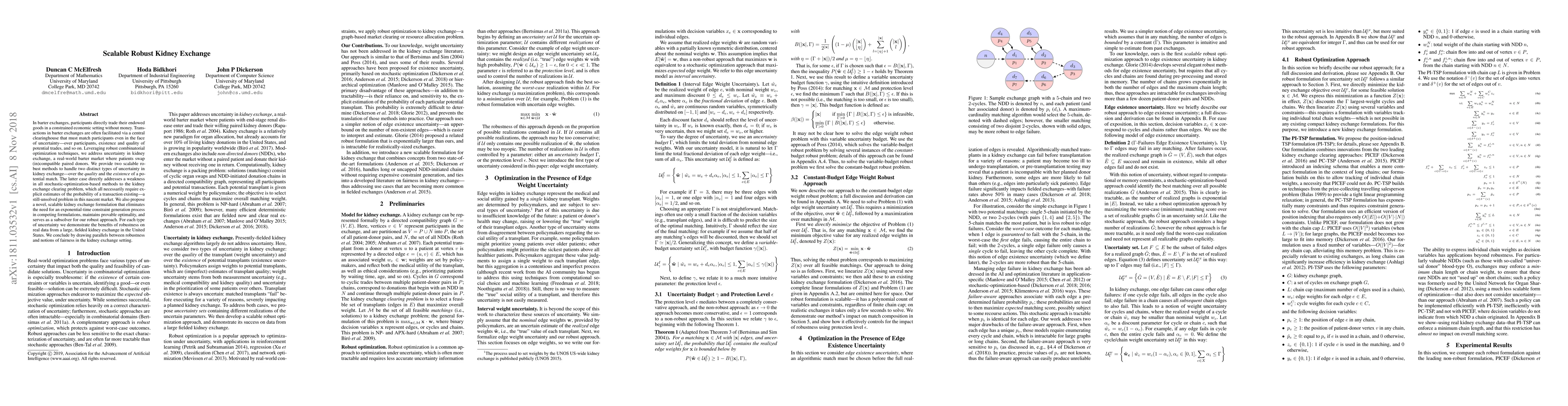 This paper presents scalable robust methods to address uncertainty in kidney exchange, a barter market where patients swap incompatible paired donors, using combinatorial optimization. It proposes two robust techniques to handle uncertainties regarding the quality and existence of potential matches, and introduces a scalable formulation that enhances efficiency and optimality.