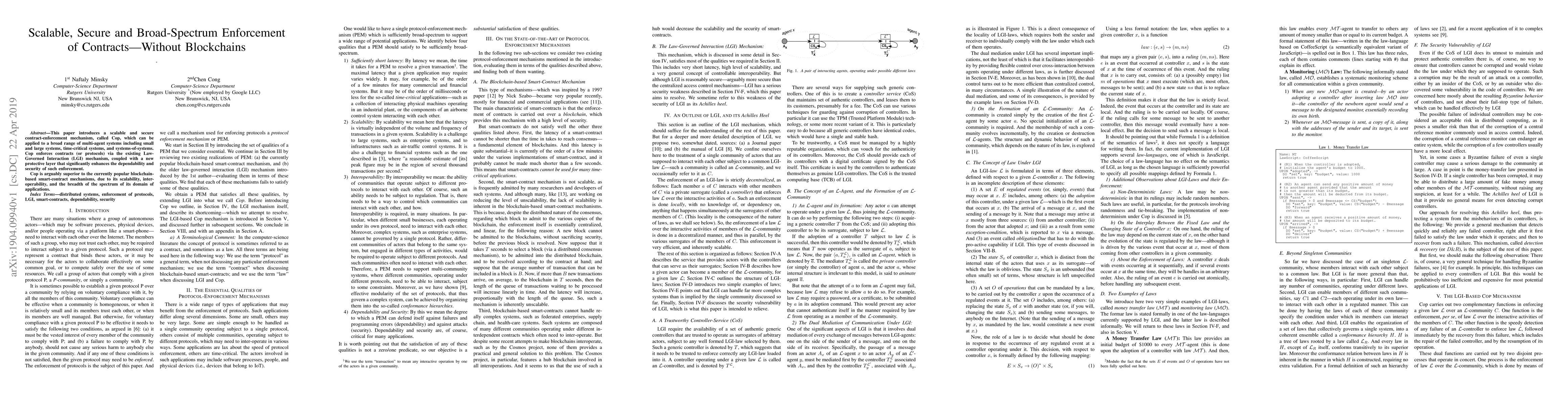 The paper presents Cop, a scalable and secure contract-enforcement system for various multi-agent systems, surpassing blockchain-based mechanisms in scalability, interoperability, and application breadth.
