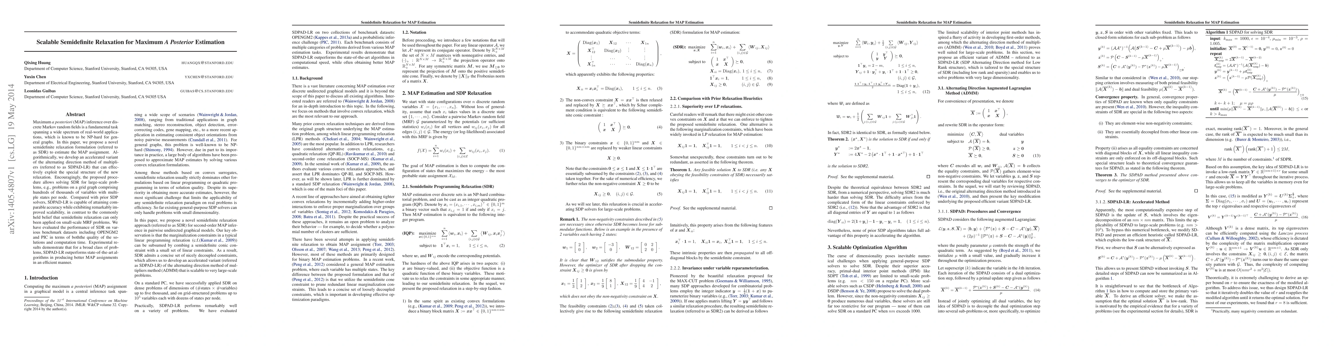 Maximum a posteriori (MAP) inference over discrete Markov random fields is a fundamental task spanning a wide spectrum of real-world applications, which is known to be NP-hard for general graphs. In this paper, we propose a novel semidefinite relaxation formulation (referred to as SDR) to estimate the MAP assignment. Algorithmically, we develop an accelerated variant of the alternating direction method of multipliers (referred to as SDPAD-LR) that can effectively exploit the special structure of the new relaxation. Encouragingly, the proposed procedure allows solving SDR for large-scale problems, e.g., problems on a grid graph comprising hundreds of thousands of variables with multiple states per node. Compared with prior SDP solvers, SDPAD-LR is capable of attaining comparable accuracy while exhibiting remarkably improved scalability, in contrast to the commonly held belief that semidefinite relaxation can only been applied on small-scale MRF problems. We have evaluated the performance of SDR on various benchmark datasets including OPENGM2 and PIC in terms of both the quality of the solutions and computation time. Experimental results demonstrate that for a broad class of problems, SDPAD-LR outperforms state-of-the-art algorithms in producing better MAP assignment in an efficient manner.