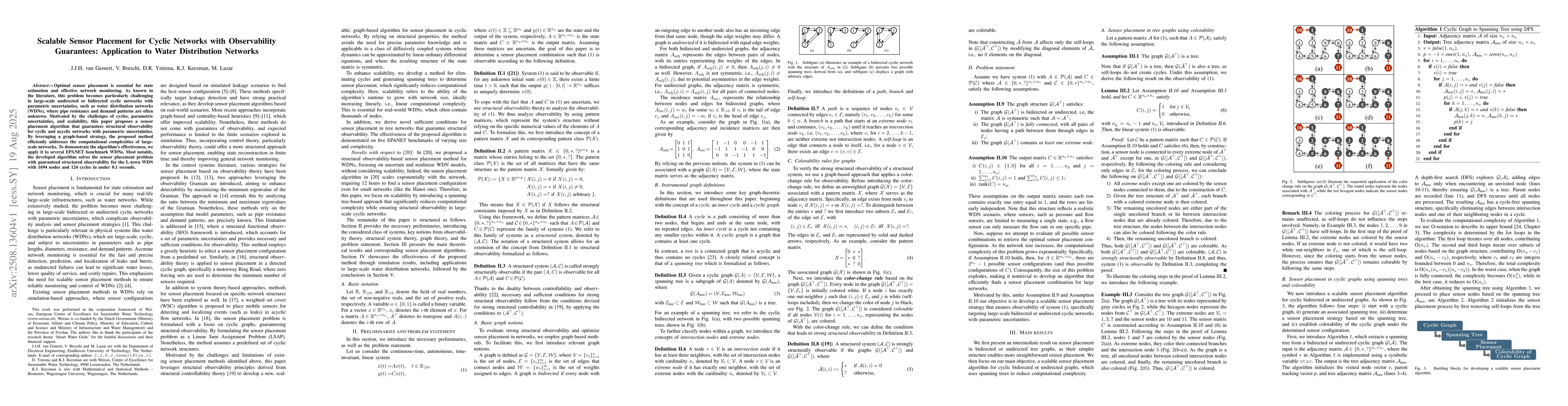 The research proposes a sensor placement algorithm for cyclic and acyclic networks with parametric uncertainties, leveraging a graph-based strategy to ensure structural observability efficiently.