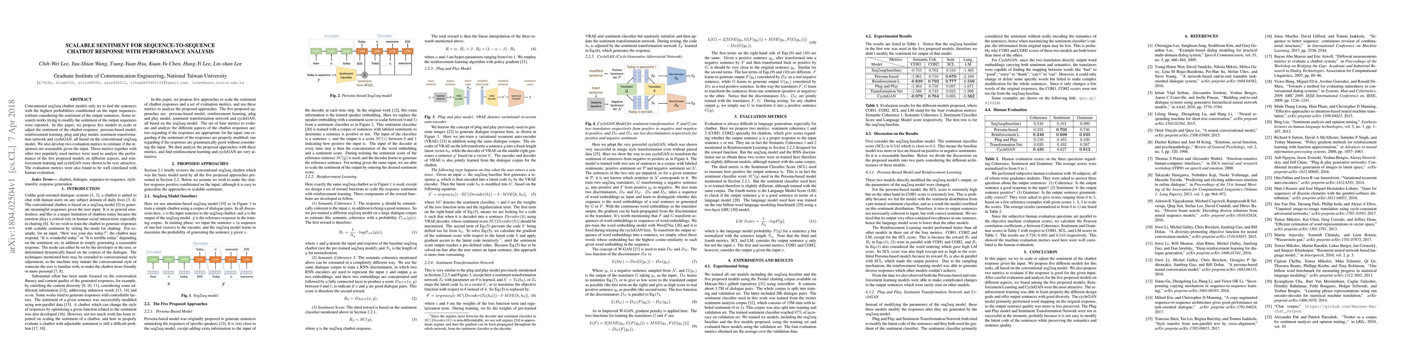 Researchers proposed five models to adjust chatbot response sentiment, showing reinforcement learning and cycleGAN perform well in scaling sentiment, with evaluation metrics correlating with human judgments.