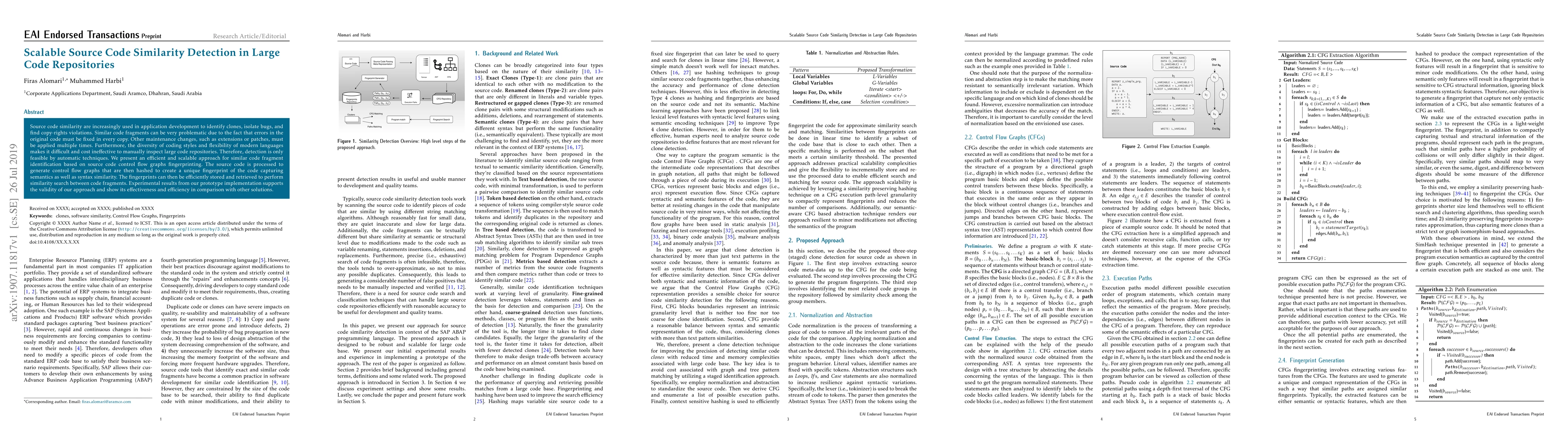 This paper proposes an efficient method for detecting similar code fragments in large code repositories using control flow graph fingerprinting. The approach hashes control flow graphs to create unique fingerprints that capture both semantics and syntax, enabling scalable similarity searches and demonstrating effectiveness in experimental results.