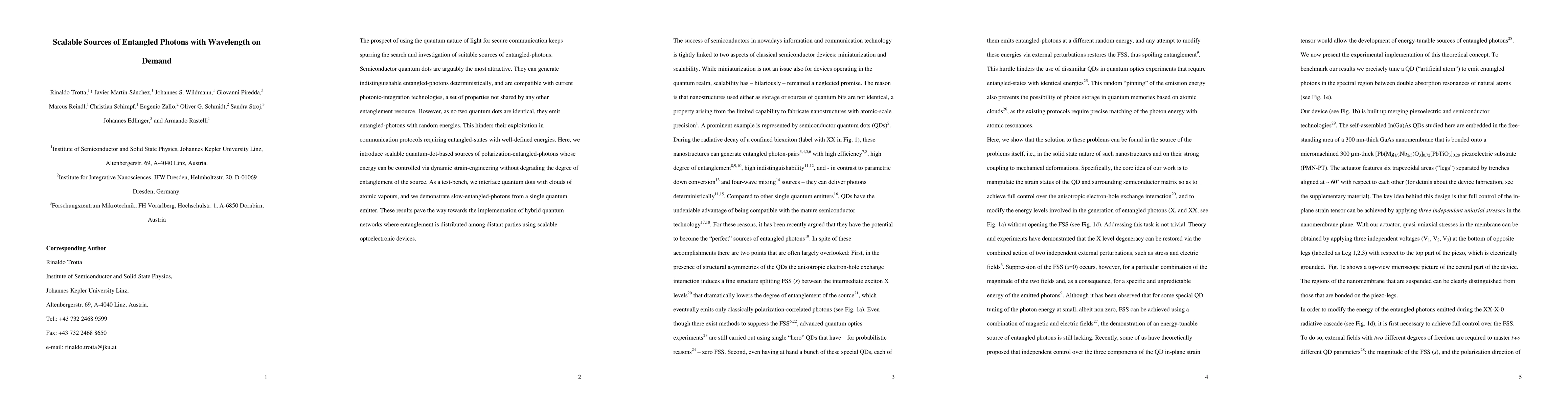 The paper presents scalable quantum-dot-based sources of polarization-entangled photons with controllable energy via dynamic strain-engineering, enabling their use in quantum communication protocols. This innovation supports the integration of entanglement distribution in hybrid quantum networks using optoelectronic devices.