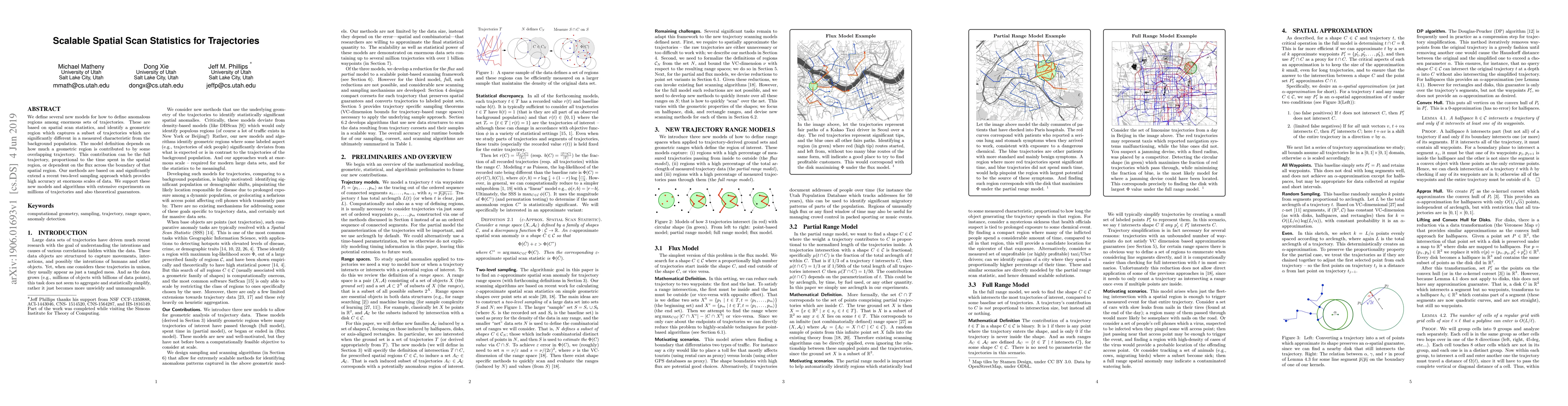 We define several new models for how to define anomalous regions among enormous sets of trajectories. These are based on spatial scan statistics, and identify a geometric region which captures a subset of trajectories which are significantly different in a measured characteristic from the background population. The model definition depends on how much a geometric region is contributed to by some overlapping trajectory. This contribution can be the full trajectory, proportional to the time spent in the spatial region, or dependent on the flux across the boundary of that spatial region. Our methods are based on and significantly extend a recent two-level sampling approach which provides high accuracy at enormous scales of data. We support these new models and algorithms with extensive experiments on millions of trajectories and also theoretical guarantees.