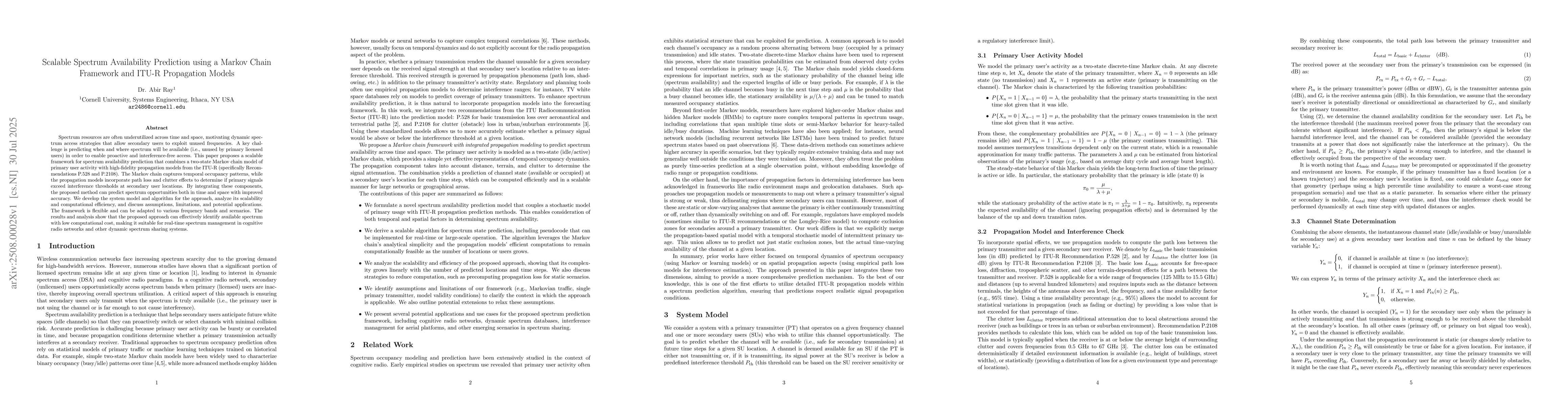 A comprehensive framework for predicting spectrum availability that integrates Markov chain modeling with ITU-R propagation prediction.