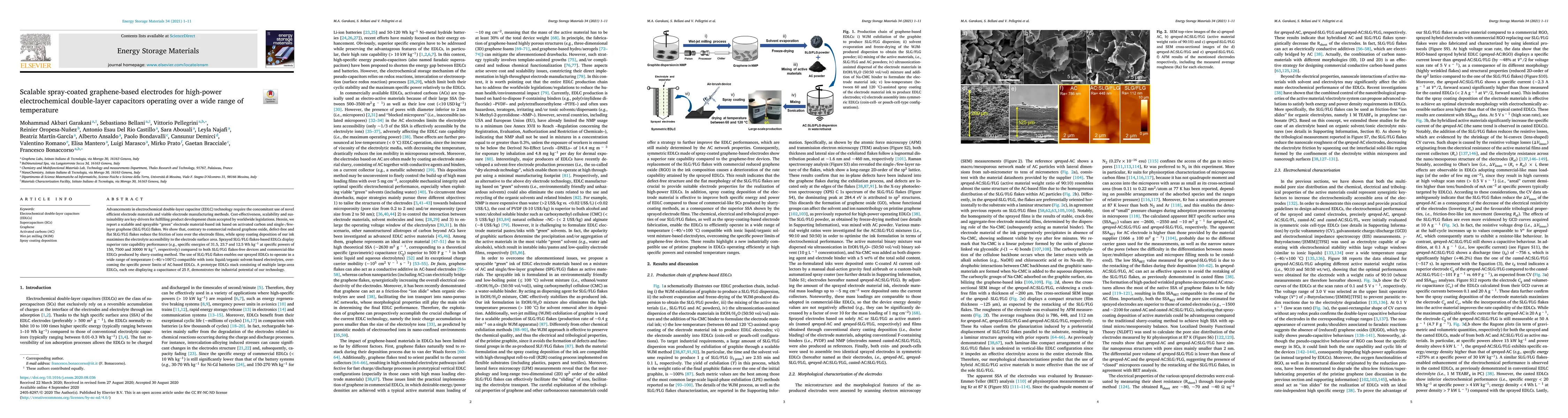 This paper presents a scalable spray-coating method for creating graphene-based electrodes using activated carbon and single-/few-layer graphene flakes, which significantly enhance the performance and temperature range of electrochemical double-layer capacitors compared to traditional methods. The proposed technology shows superior rate capability and wide operational temperature range, indicating potential for industrial applications.
