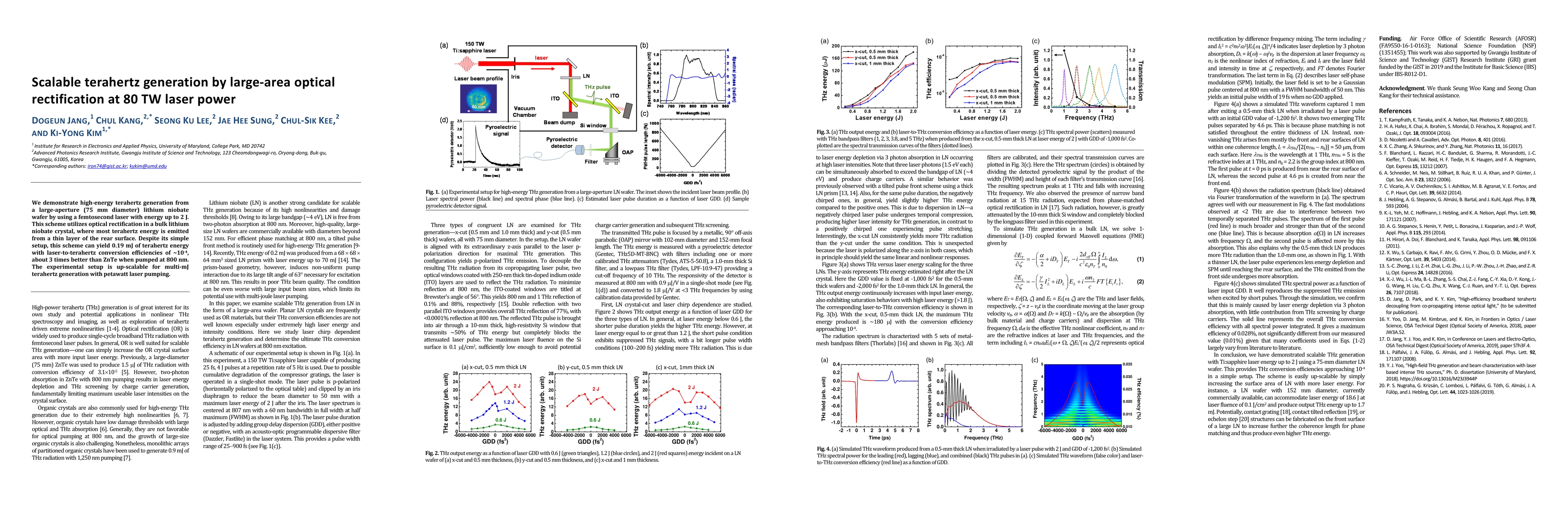 This research demonstrates scalable high-energy terahertz generation via optical rectification in large-area lithium niobate using an 80 TW laser, achieving 0.19 mJ of terahertz energy and a conversion efficiency of ~0.01%. The method is up-scalable for future multi-mJ terahertz production.