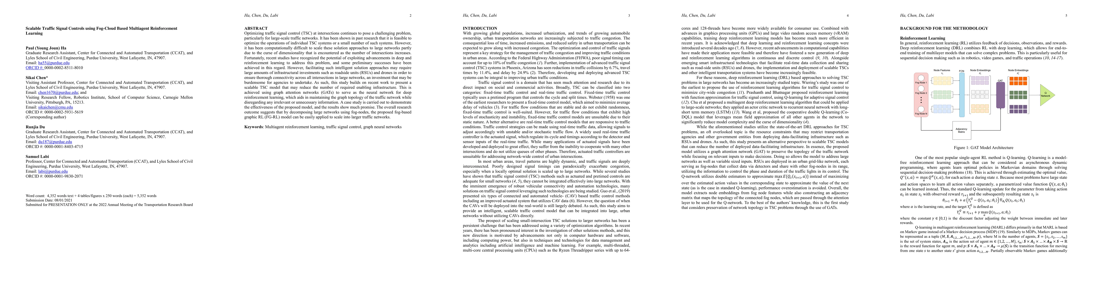 Optimizing traffic signal control (TSC) at intersections continues to pose a challenging problem, particularly for large-scale traffic networks. It has been shown in past research that it is feasible to optimize the operations of individual TSC systems or a small number of such systems. However, it has been computationally difficult to scale these solution approaches to large networks partly due to the curse of dimensionality that is encountered as the number of intersections increases. Fortunately, recent studies have recognized the potential of exploiting advancements in deep and reinforcement learning to address this problem, and some preliminary successes have been achieved in this regard. However, facilitating such intelligent solution approaches may require large amounts of infrastructural investments such as roadside units (RSUs) and drones in order to ensure thorough connectivity across all intersections in large networks, an investment that may be burdensome for agencies to undertake. As such, this study builds on recent work to present a scalable TSC model that may reduce the number of required enabling infrastructure. This is achieved using graph attention networks (GATs) to serve as the neural network for deep reinforcement learning, which aids in maintaining the graph topology of the traffic network while disregarding any irrelevant or unnecessary information. A case study is carried out to demonstrate the effectiveness of the proposed model, and the results show much promise. The overall research outcome suggests that by decomposing large networks using fog-nodes, the proposed fog-based graphic RL (FG-RL) model can be easily applied to scale into larger traffic networks.