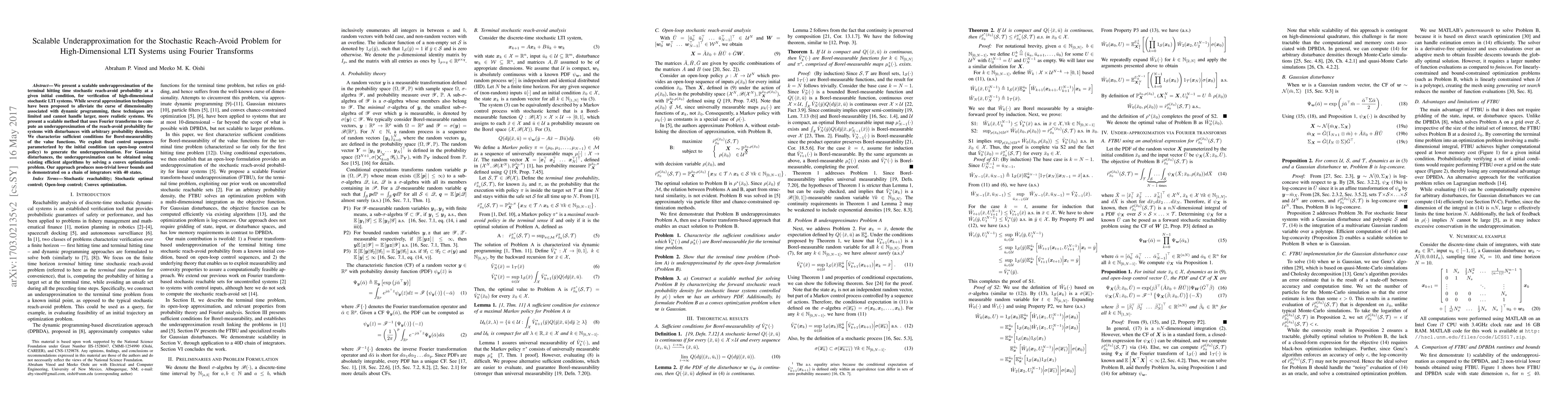 This paper introduces a scalable underapproximation method using Fourier transforms to solve the stochastic reach-avoid problem for high-dimensional linear time-invariant systems. The method provides a non-trivial lower bound for the reach-avoid probability and is demonstrated on a 40-state system.
