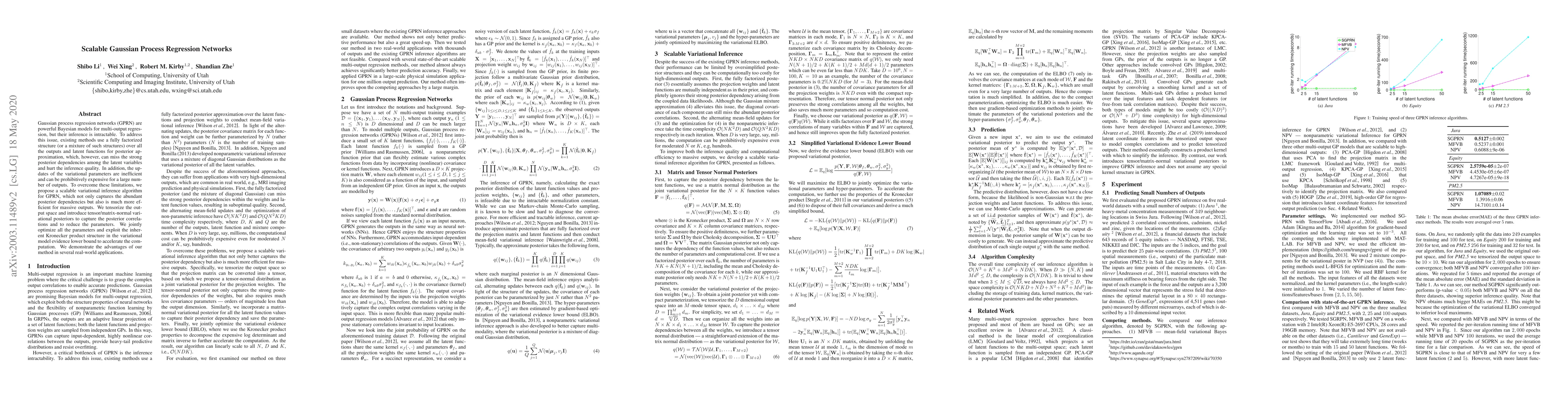 This paper proposes a scalable variational inference algorithm for Gaussian process regression networks to address intractability and inefficiency issues, utilizing tensor/matrix-normal variational posteriors and exploiting Kronecker product structures to capture dependencies and accelerate computation. The method demonstrates improved performance over existing methods in real-world applications.