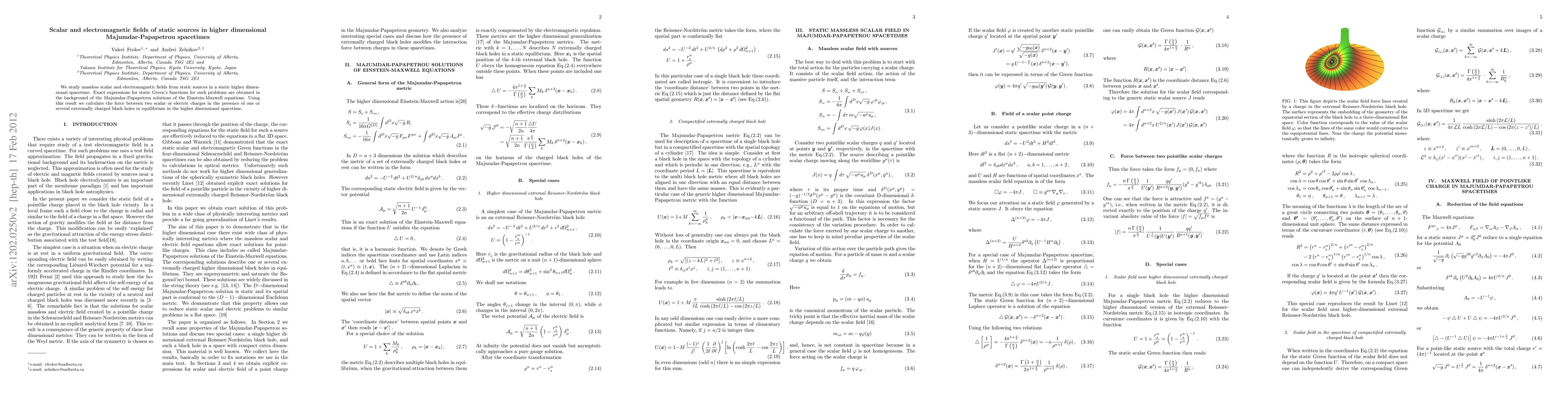 We study scalar massless and electromagnetic fields from static sources in a static higher dimensional spacetime. Exact expressions for static Green's functions for such problems are obtained in the background of the Majumdar-Papapetrou solutions of the Einstein-Maxwell equations. Using this result we calculated the force between two scalar or electric charges in the presence of one or several extremely charged black holes in equilibrium in the higher dimensional spacetime.