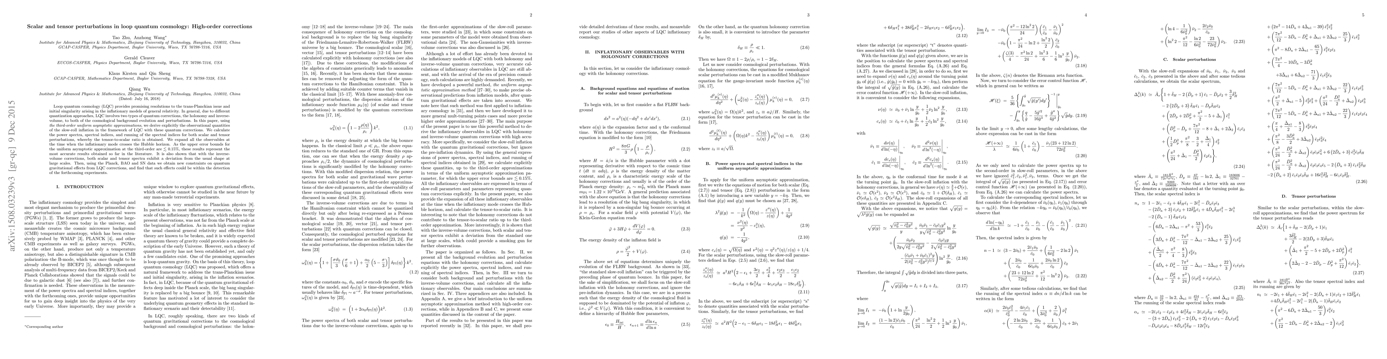 This paper investigates high-order corrections in loop quantum cosmology (LQC) using third-order uniform asymptotic approximations, deriving precise observational quantities for slow-roll inflation. It reveals deviations in scalar and tensor perturbation spectra due to inverse-volume corrections, and suggests that LQC effects may be detectable by future experiments.