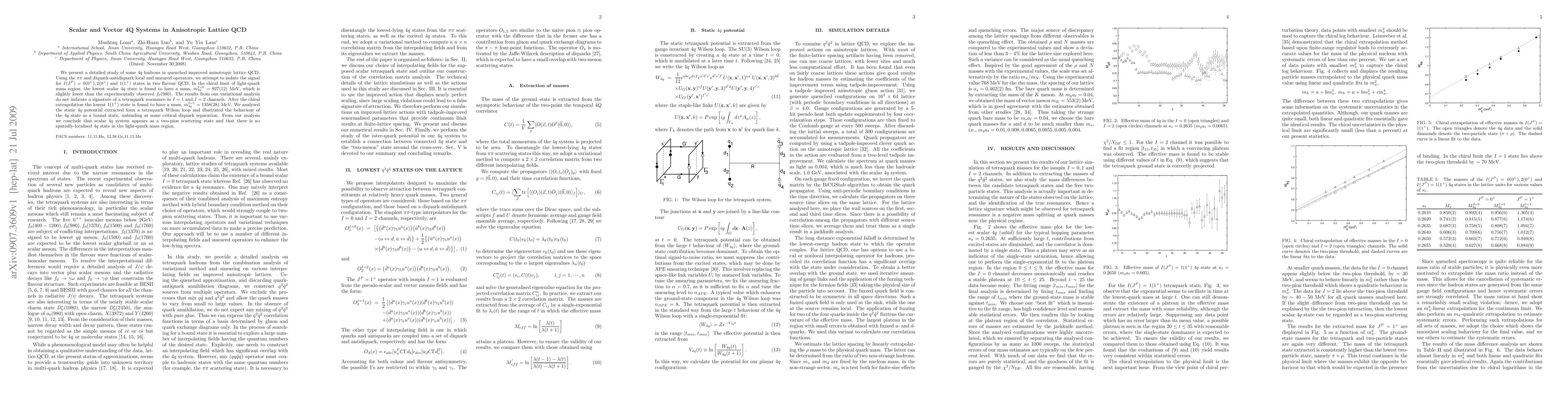 We present a detailed study of some $4q$ hadrons in quenched improved anisotropic lattice QCD. Using the $\pi\pi$ and diquark-antidiquark local and smeared operators, we attempt to isolate the signal for $I(J^{P})=0(0^{+}), 2(0^{+})$ and $1(1^{+})$ states in two flavour QCD. In the chiral limit of light-quark mass region, the lowest scalar $4q$ state is found to have a mass, $m^{I=0}_{4q}=927(12)$ MeV, which is slightly lower than the experimentally observed $f_{0}(980)$. The results from our variational analysis do not indicate a signature of a tetraquark resonance in I=1 and I=2 channels. After the chiral extrapolation the lowest $1(1^{+})$ state is found to have a mass, $m^{I=1}_{4q}=1358(28)$ MeV. We analysed the static $4q$ potential extracted form a tetraquark Wilson loop and illustrated the behaviour of the $4q$ state as a bound state, unbinding at some critical diquark separation. From our analysis we conclude that scalar $4q$ system appears as a two-pion scattering state and that there is no spatially-localised $4q$ state in the light-quark mass region.