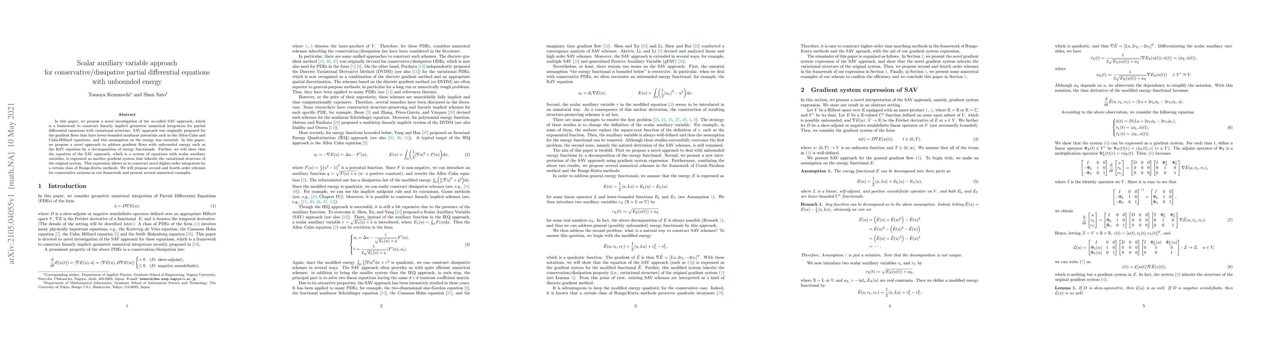 In this paper, we present a novel investigation of the so-called SAV approach, which is a framework to construct linearly implicit geometric numerical integrators for partial differential equations with variational structure. SAV approach was originally proposed for the gradient flows that have lower-bounded nonlinear potentials such as the Allen-Cahn and Cahn-Hilliard equations, and this assumption on the energy was essential. In this paper, we propose a novel approach to address gradient flows with unbounded energy such as the KdV equation by a decomposition of energy functionals. Further, we will show that the equation of the SAV approach, which is a system of equations with scalar auxiliary variables, is expressed as another gradient system that inherits the variational structure of the original system. This expression allows us to construct novel higher-order integrators by a certain class of Runge-Kutta methods. We will propose second and fourth order schemes for conservative systems in our framework and present several numerical examples.