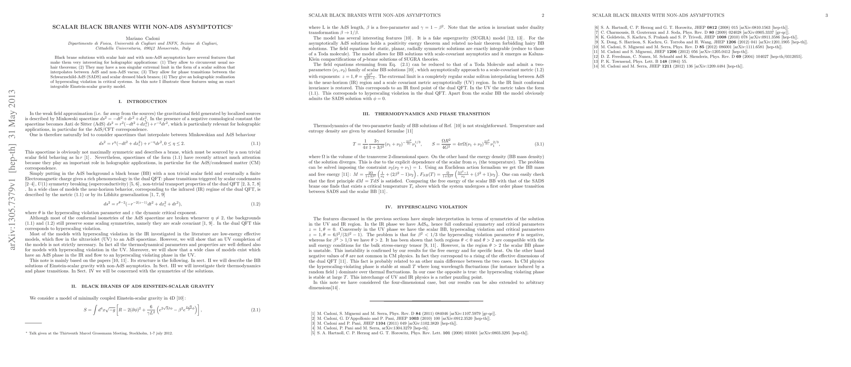 Black brane solutions with scalar hair and with non-AdS asymptotics have several features that make them very interesting for holographic applications: (1) They allow to circumvent usual no-hair theorems; (2) They may have a non singular extremal limit in the form of a scalar soliton that interpolates between AdS and non-AdS vacua; (3) They allow for phase transitions between the Schwarzschild-AdS (SADS) and scalar dressed black branes; (4) They give an holographic realization of hyperscaling violation in critical systems. In this note I illustrate these features using an exact integrable Einstein-scalar gravity model.