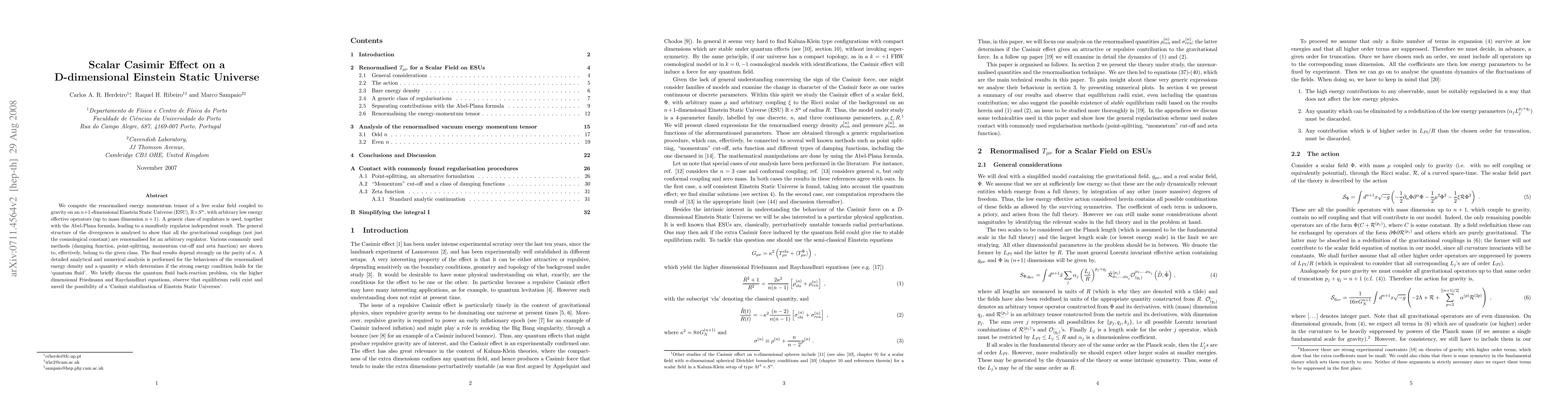 Researchers computed the renormalized energy-momentum tensor of a free scalar field coupled to gravity on an Einstein Static Universe, finding that gravitational couplings are renormalized for arbitrary regulators, with results depending strongly on the dimensionality of the universe.