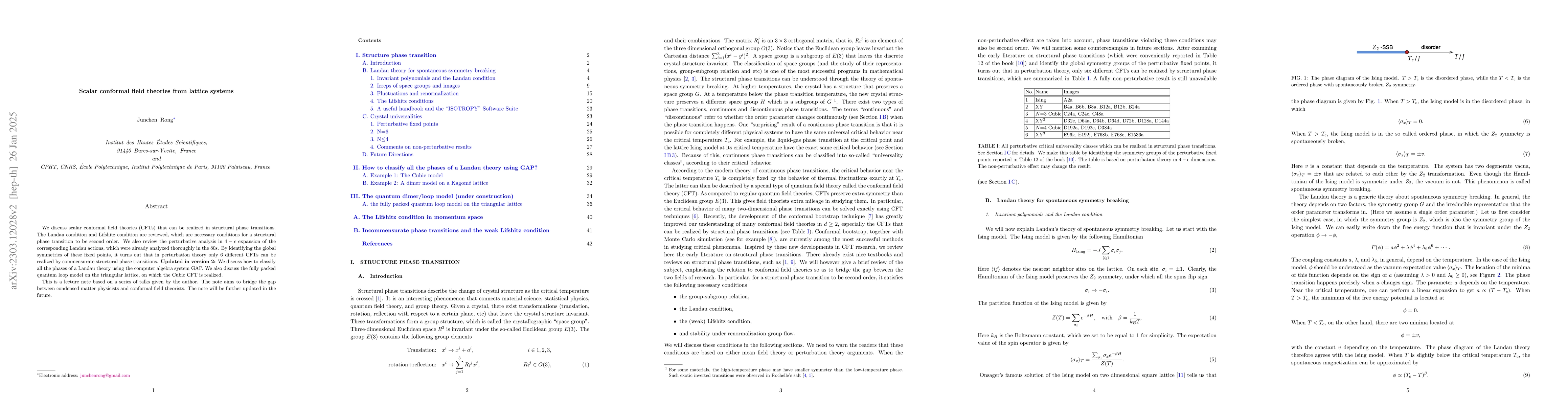 This paper explores scalar conformal field theories (CFTs) arising from structural phase transitions, reviewing necessary conditions for second-order transitions and analyzing the $4-\epsilon$ expansion of Landau actions. It identifies six distinct CFTs realizable through commensurate structural phase transitions, aiming to bridge the gap between condensed matter physics and conformal field theory.