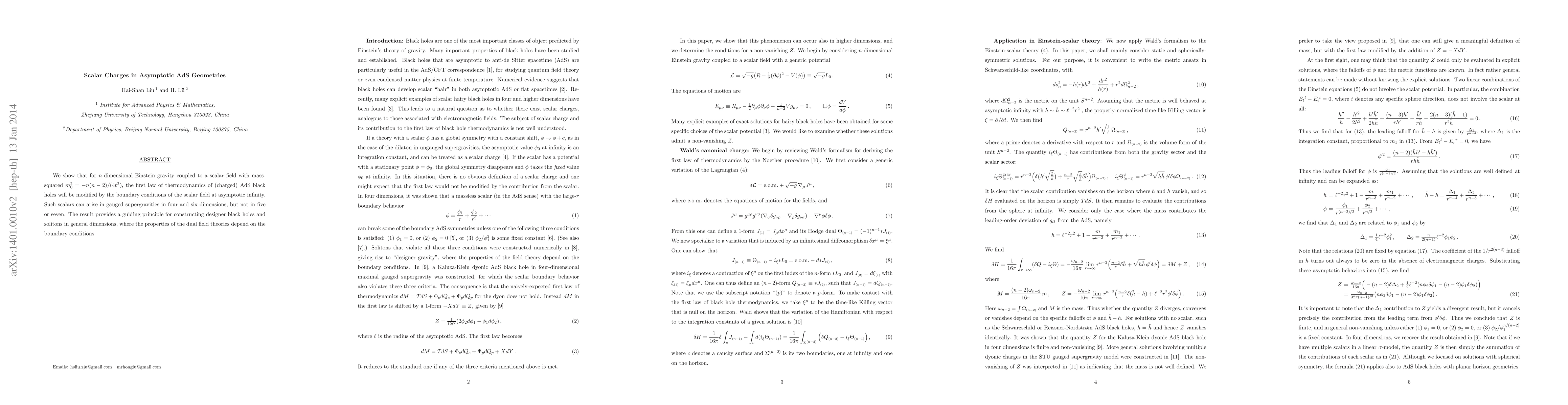 We show that for n-dimensional Einstein gravity coupled to a scalar field with mass-squared m_0^2=-n(n-2)/(4\ell^2), the first law of thermodynamics of (charged) AdS black holes will be modified by the boundary conditions of the scalar field at asymptotic infinity. Such scalars can arise in gauged supergravities in four and six dimensions, but not in five or seven. The result provides a guiding principle for constructing designer black holes and solitons in general dimensions, where the properties of the dual field theories depend on the boundary conditions.