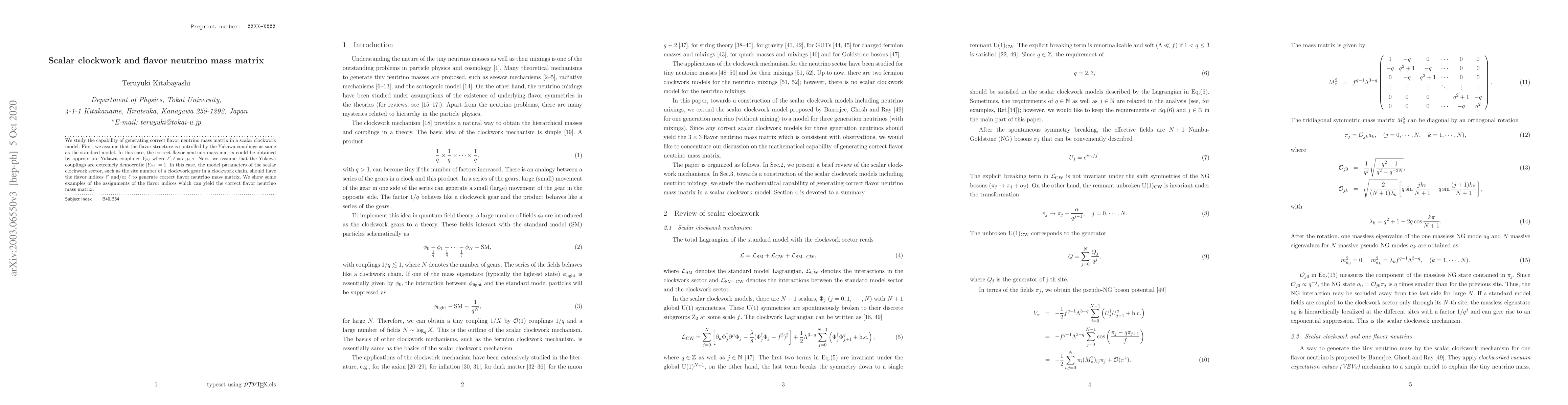 This paper explores how a scalar clockwork model can generate the correct flavor neutrino mass matrix, either through appropriate Yukawa couplings or by assigning flavor indices to model parameters in a democratic Yukawa scenario. Examples of such assignments are provided.