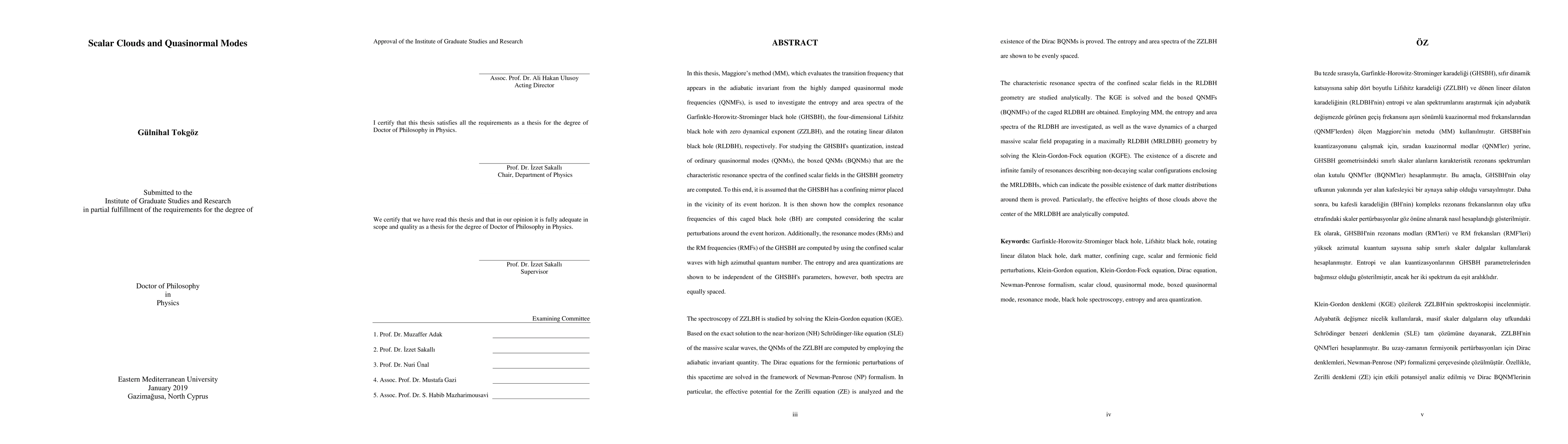 In this thesis, Maggiore's method (MM), which evaluates the transition frequency that appears in the adiabatic invariant from the highly damped quasinormal mode frequencies (QNMFs), is used to investigate the entropy and area spectra of the Garfinkle-Horowitz-Strominger black hole (GHSBH), the four-dimensional Lifshitz black hole with zero dynamical exponent (ZZLBH), and the rotating linear dilaton black hole (RLDBH), respectively. For studying the GHSBH's quantization, instead of ordinary quasinormal modes (QNMs), the boxed QNMs (BQNMs) that are the characteristic resonance spectra of the confined scalar fields in the GHSBH geometry are computed. To this end, it is assumed that the GHSBH has a confining mirror placed in the vicinity of its event horizon. It is then shown how the complex resonance frequencies of this caged black hole (BH) are computed considering the scalar perturbations around the event horizon. Additionally, the resonance modes (RMs) and the RM frequencies (RMFs) of the GHSBH are computed by using the confined scalar waves with high azimuthal quantum number. The entropy and area quantizations are shown to be independent of the GHSBH's parameters, however, both spectra are equally spaced.