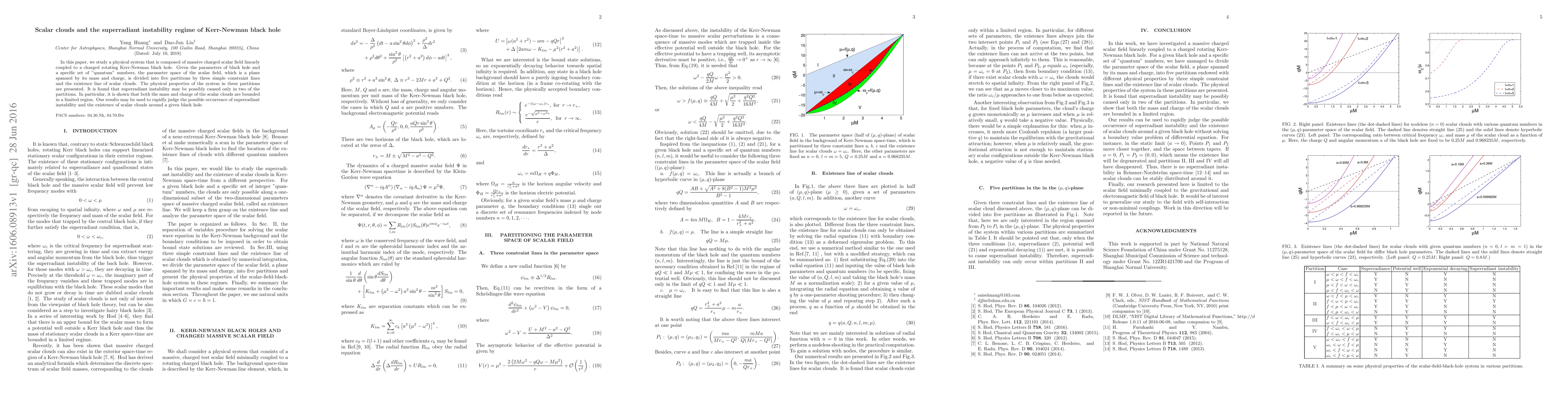 In this paper, we study a physical system that is composed of massive charged scalar field linearly coupled to a charged rotating Kerr-Newman black hole. Given the parameters of black hole and a specific set of "quantum" numbers, the parameter space of the scalar field, which is a plane spanned by its mass and charge, is divided into five partitions by three simple constraint lines and the existence line of scalar clouds. The physical properties of the system in these partitions are presented. It is found that superradiant instability may be possibly caused only in two of the partitions. In particular, it is shown that both the mass and charge of the scalar clouds are bounded in a limited region. Our results may be used to rapidly judge the possible occurrence of superradiant instability and the existence of scalar clouds around a given black hole.