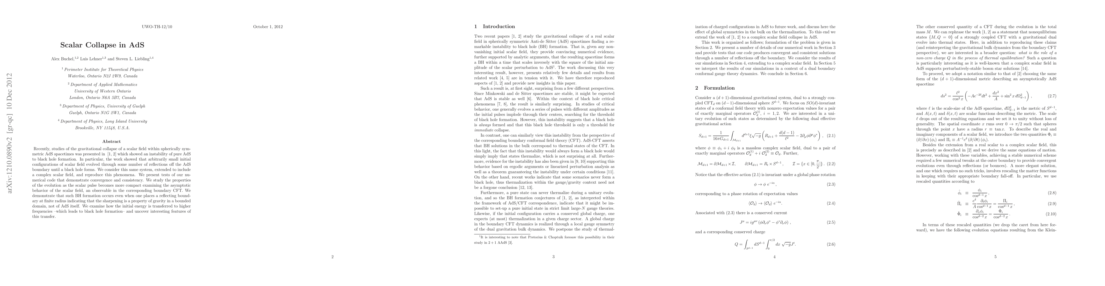This paper investigates the gravitational collapse of a complex scalar field in spherically symmetric AdS spacetimes, confirming the instability of pure AdS leading to black hole formation. The study demonstrates that even with a reflecting boundary, the scalar field's energy transfer to higher frequencies results in black hole formation, highlighting a fundamental property of gravity in bounded domains.