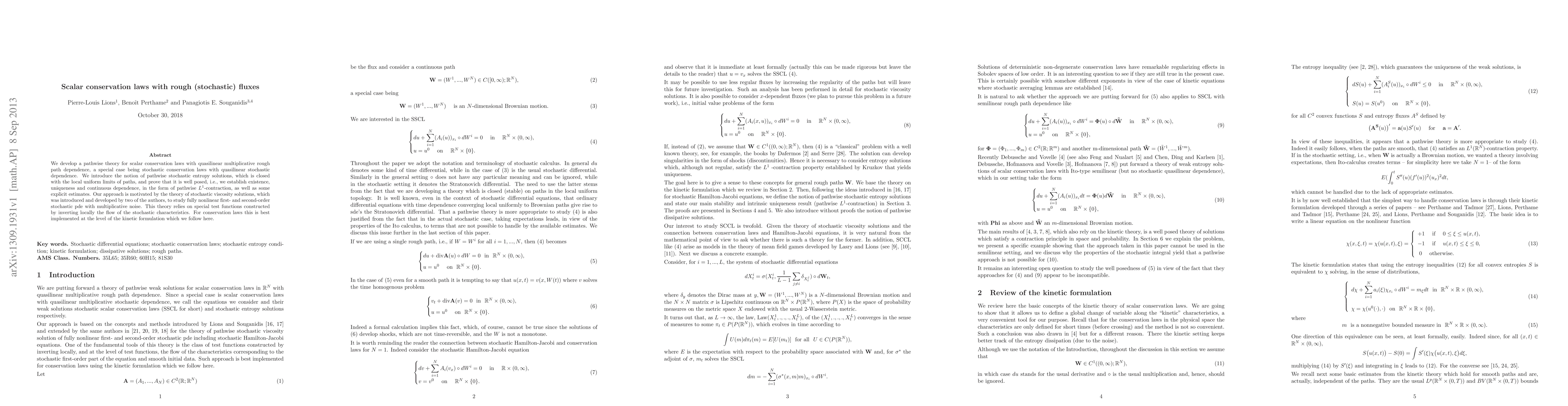 This paper develops a pathwise theory for scalar conservation laws with quasilinear multiplicative rough path dependence, proving existence, uniqueness, and continuous dependence for pathwise stochastic entropy solutions. The approach is inspired by stochastic viscosity solutions and implemented via the kinetic formulation.