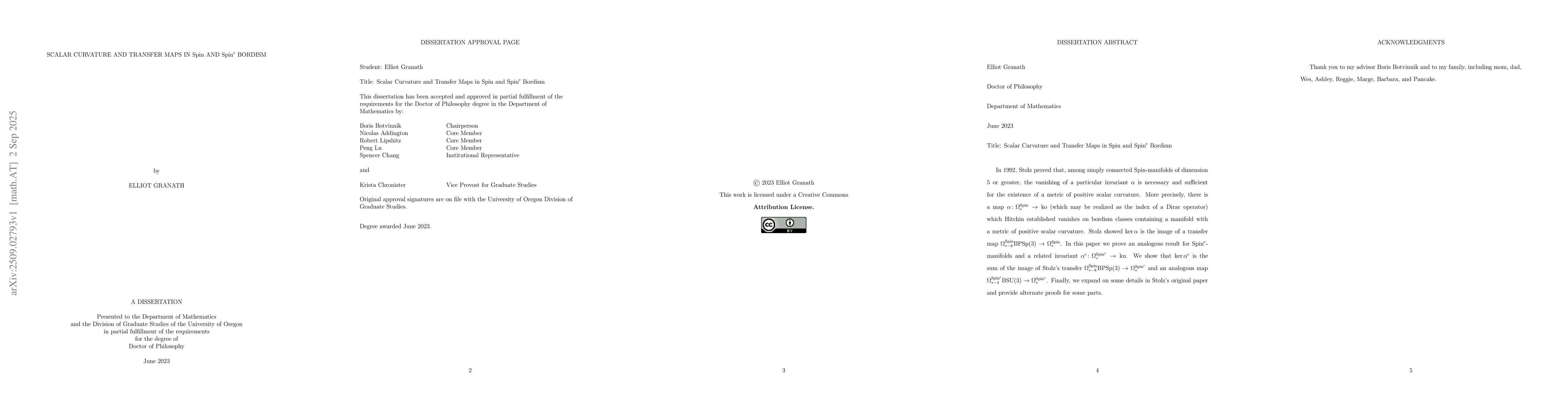 In 1992, Stolz proved that, among simply connected Spin-manifolds of dimension 5 or greater, the vanishing of a particular invariant $\alpha$ is necessary and sufficient for the existence of a metric of positive scalar curvature. More precisely, there is a map $\alpha\colon\Omega_*^{\rm Spin}\to {\rm ko}$ (which may be realized as the index of a Dirac operator) which Hitchin established vanishes on bordism classes containing a manifold with a metric of positive scalar curvature. Stolz showed $\ker\alpha$ is the image of a transfer map $\Omega_{*-8}^{\rm Spin}{\rm BPSp}(3)\to\Omega_*^{\rm Spin}$. In this paper we prove an analogous result for Spin$^c$-manifolds and a related invariant $\alpha^c: \Omega_*^{{\rm Spin}^c} \to {\rm ku}$. We show that $\ker\alpha^x$ is the sum of the image of Stolz's transfer $\Omega_{*-8}^{\rm Spin}{\rm BPSp}(3) \to \Omega_*^{{\rm Spin}^c}$ and an analogous map $\Omega_{*-4}^{{\rm Spin}^c}{\rm BSU}(3) \to \Omega_*^{{\rm Spin}^c}$. Finally, we expand on some details in Stolz's original paper and provide alternate proofs for some parts.