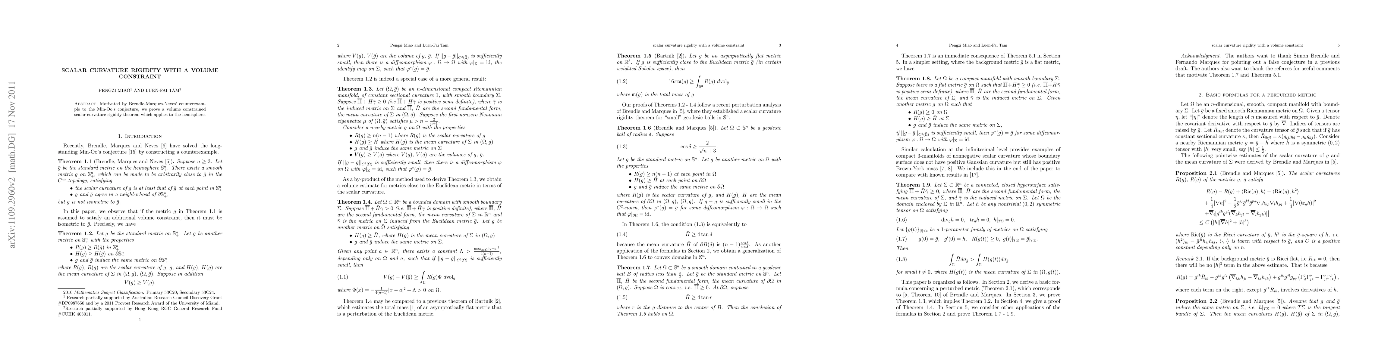 Motivated by Brendle-Marques-Neves' counterexample to the Min-Oo's conjecture, we prove a volume constrained scalar curvature rigidity theorem which applies to the hemisphere.