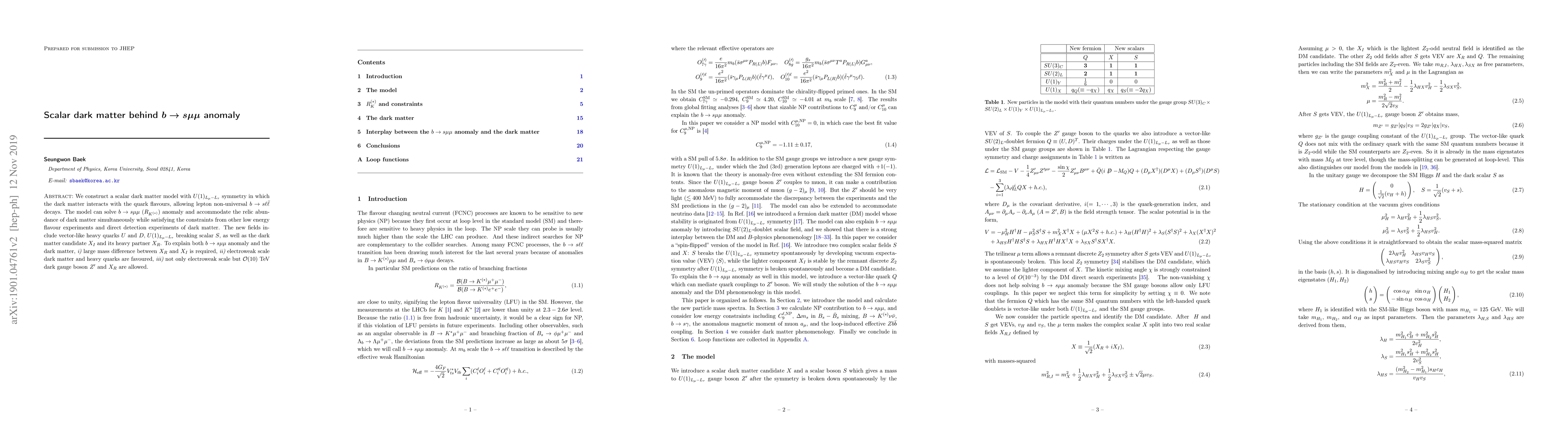 This paper proposes a scalar dark matter model with $U(1)_{L_\mu-L_\tau}$ symmetry to address the $b \to s \mu \mu$ anomaly, introducing new fields like vector-like quarks and a breaking scalar. The model successfully explains the anomaly and accommodates dark matter while meeting experimental constraints.