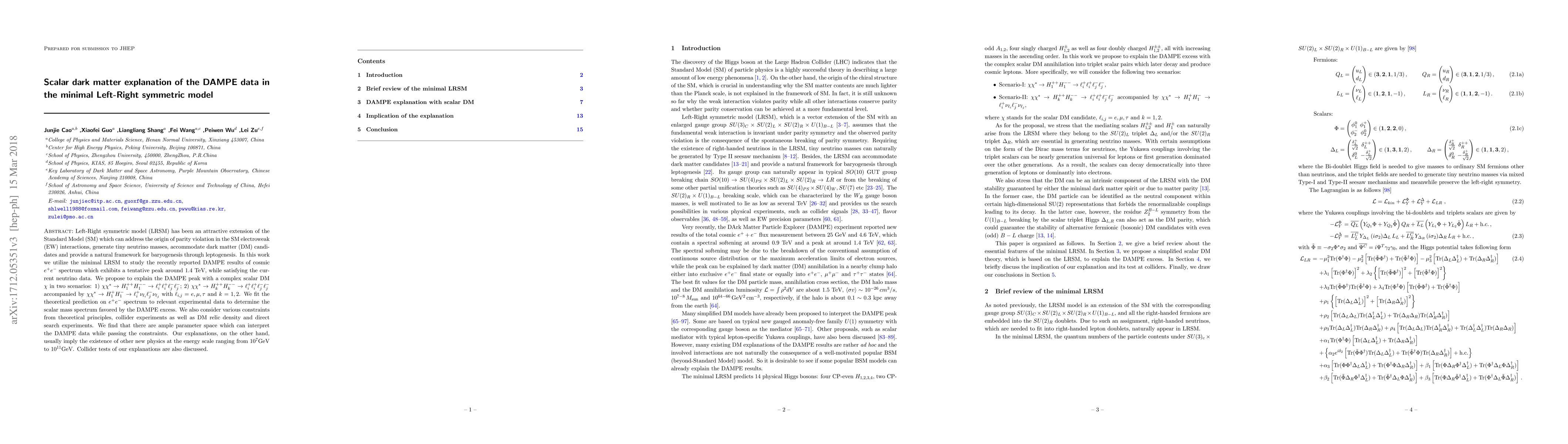 A new model explains a recent cosmic particle excess using a complex scalar dark matter candidate in a minimal Left-Right symmetric model, offering a possible explanation for the observed phenomenon while requiring additional new physics at high energies.