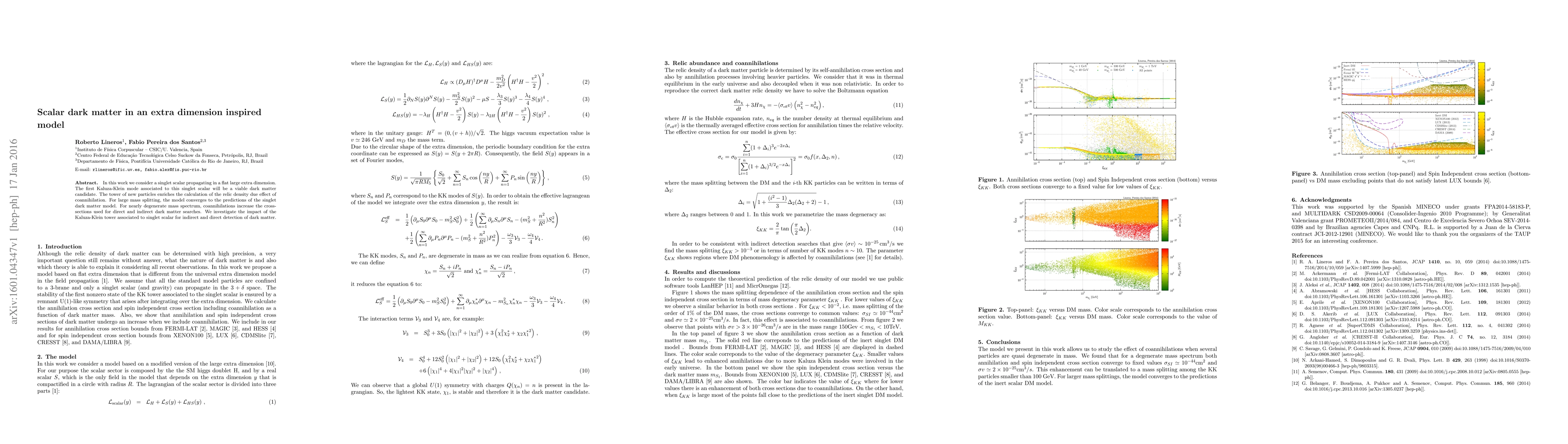 This paper explores a singlet scalar in a large extra dimension as a viable dark matter candidate, emphasizing the impact of coannihilation on relic density calculations. It investigates how the Kaluza-Klein tower affects both direct and indirect dark matter detection methods.