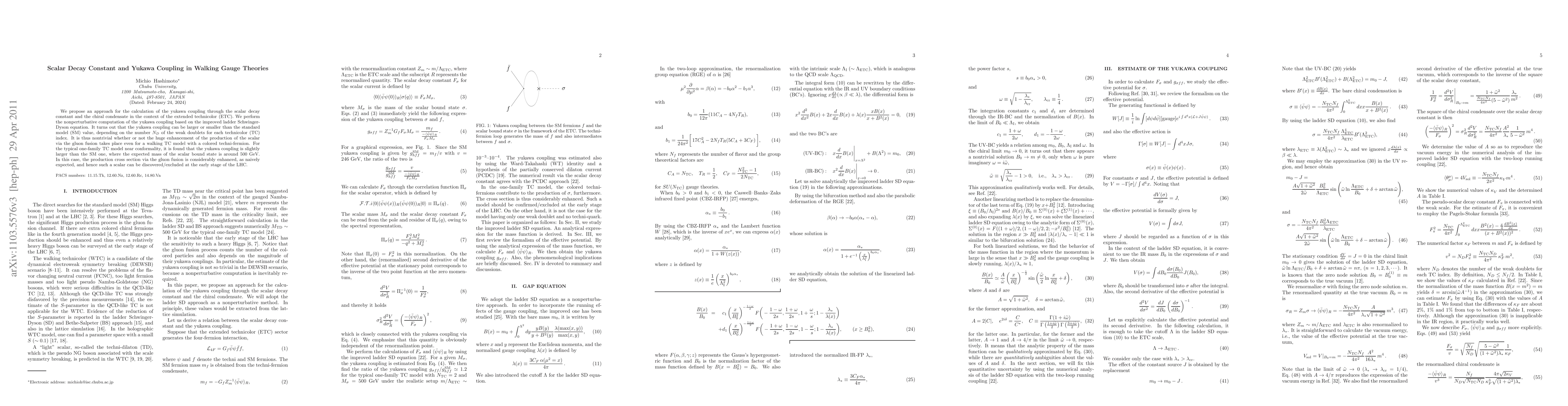Researchers found that a walking gauge theory can produce a scalar coupling larger than the Standard Model, potentially detectable at the LHC, depending on the number of weak doublets.