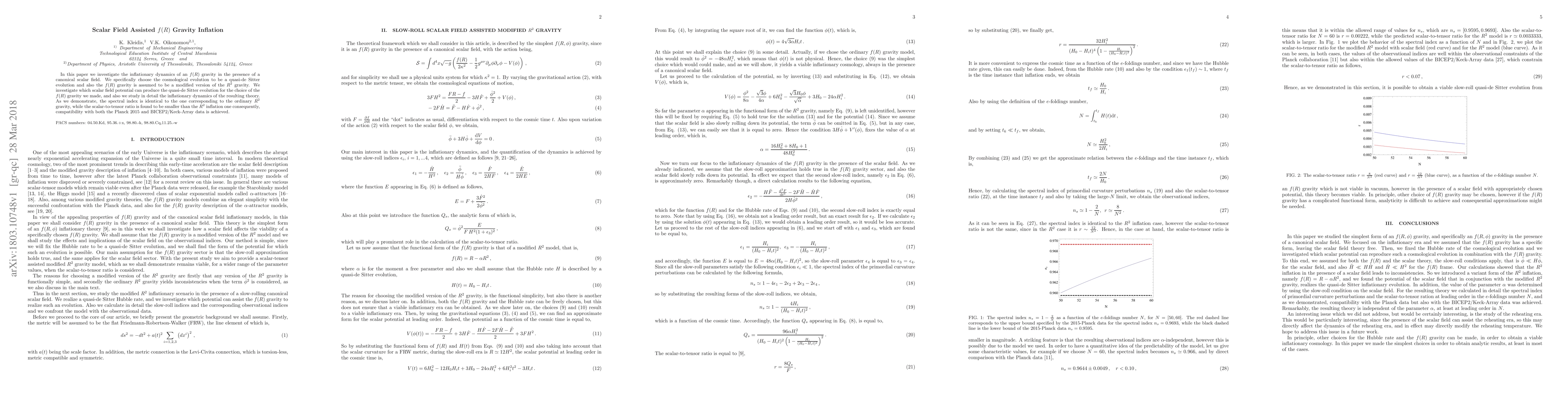 In this paper we investigate the inflationary dynamics of an $f(R)$ gravity in the presence of a canonical scalar field. We specifically choose the cosmological evolution to be a quasi-de Sitter evolution and also the $f(R)$ gravity is assumed to be a modified version of the $R^2$ gravity. We investigate which scalar field potential can produce the quasi-de Sitter evolution for the choice of the $f(R)$ gravity we made, and also we study in detail the inflationary dynamics of the resulting theory. As we demonstrate, the spectral index is identical to the one corresponding to the ordinary $R^2$ gravity, while the scalar-to-tensor ratio is found to be smaller than the $R^2$ inflation one consequently, compatibility with both the Planck 2015 and BICEP2/Keck-Array data is achieved.