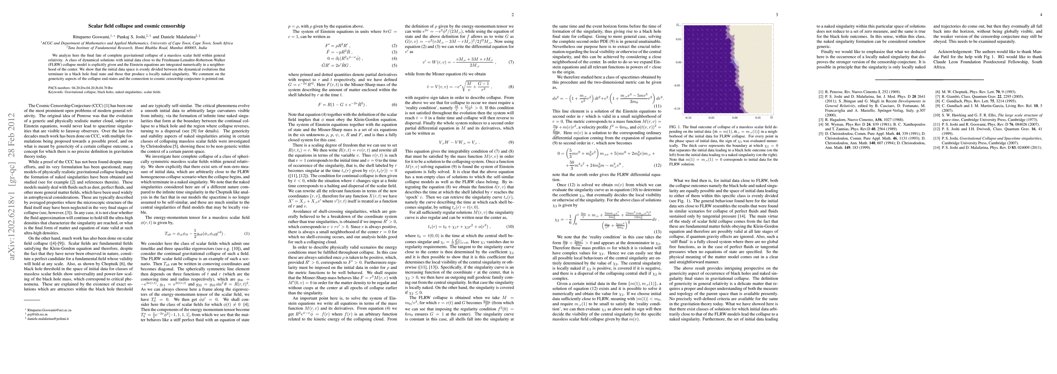 This paper investigates the gravitational collapse of a massless scalar field in general relativity, finding that initial data leads to either black hole formation or locally naked singularities, thus addressing the cosmic censorship conjecture.