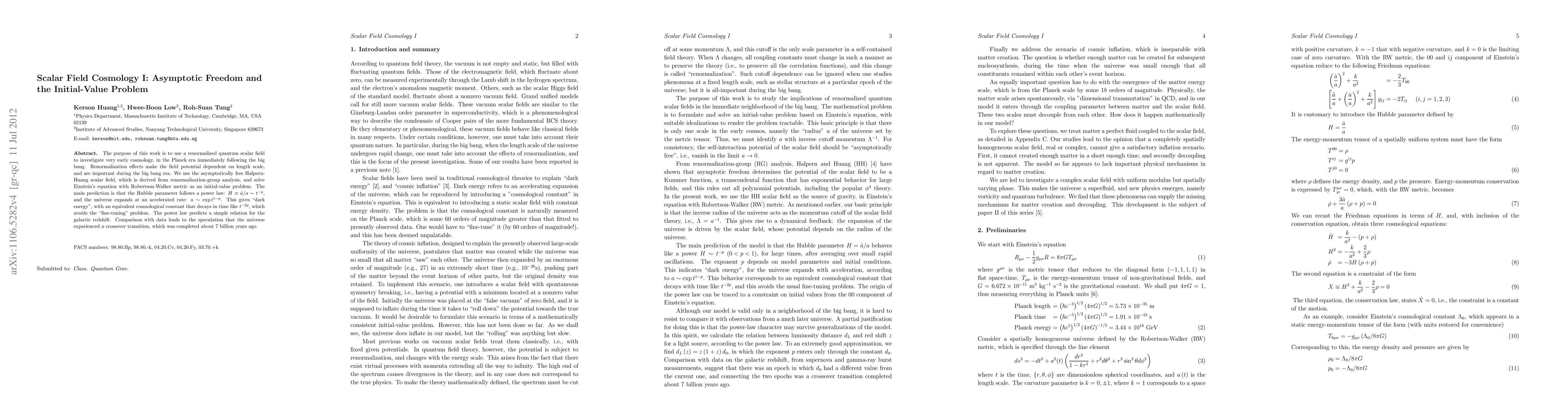 The purpose of this work is to use a renormalized quantum scalar field to investigate very early cosmology, in the Planck era immediately following the big bang. Renormalization effects make the field potential dependent on length scale, and are important during the big bang era. We use the asymptotically free Halpern-Huang scalar field, which is derived from renormalization-group analysis, and solve Einstein's equation with Robertson-Walker metric as an initial-value problem. The main prediction is that the Hubble parameter follows a power law: $H\equiv\dot{a}/a\sim t^{-p}$, and the universe expands at an accelerated rate: $a\sim\exp t^{1-p}$. This gives "dark energy", with an equivalent cosmological constant that decays in time like $t^{-2p}$, which avoids the "fine-tuning" problem. The power law predicts a simple relation for the galactic redshift. Comparison with data leads to the speculation that the universe experienced a crossover transition, which was completed about 7 billion years ago.
