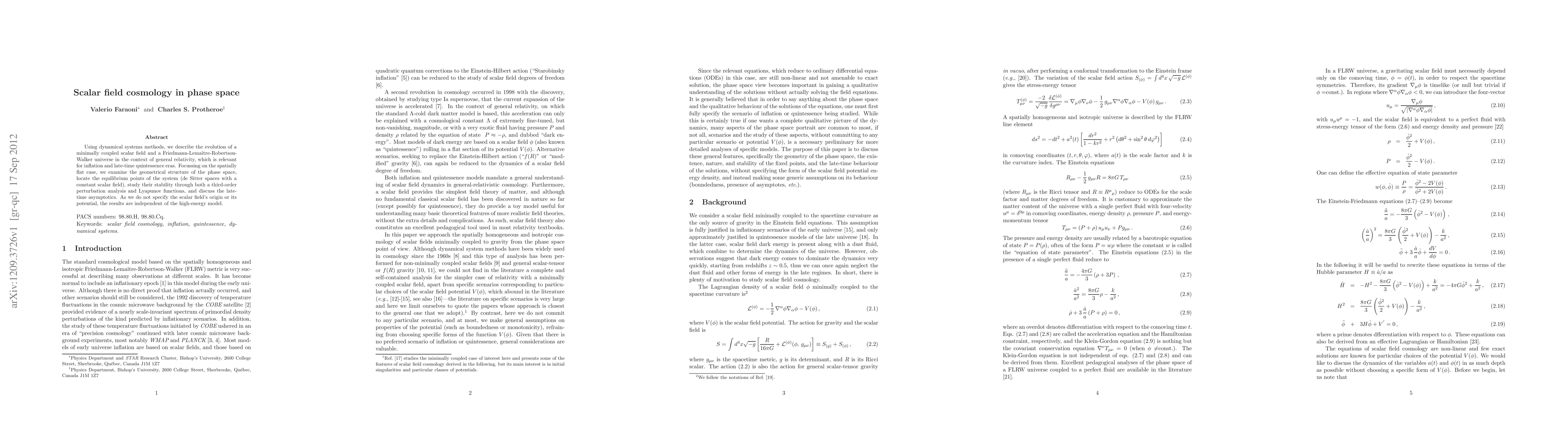 Using dynamical systems methods, we describe the evolution of a minimally coupled scalar field and a Friedmann-Lemaitre-Robertson-Walker universe in the context of general relativity, which is relevant for inflation and late-time quintessence eras. Focussing on the spatially flat case, we examine the geometrical structure of the phase space, locate the equilibrium points of the system (de Sitter spaces with a constant scalar field), study their stability through both a third-order perturbation analysis and Lyapunov functions, and discuss the late-time asymptotics. As we do not specify the scalar field's origin or its potential, the results are independent of the high-energy model.