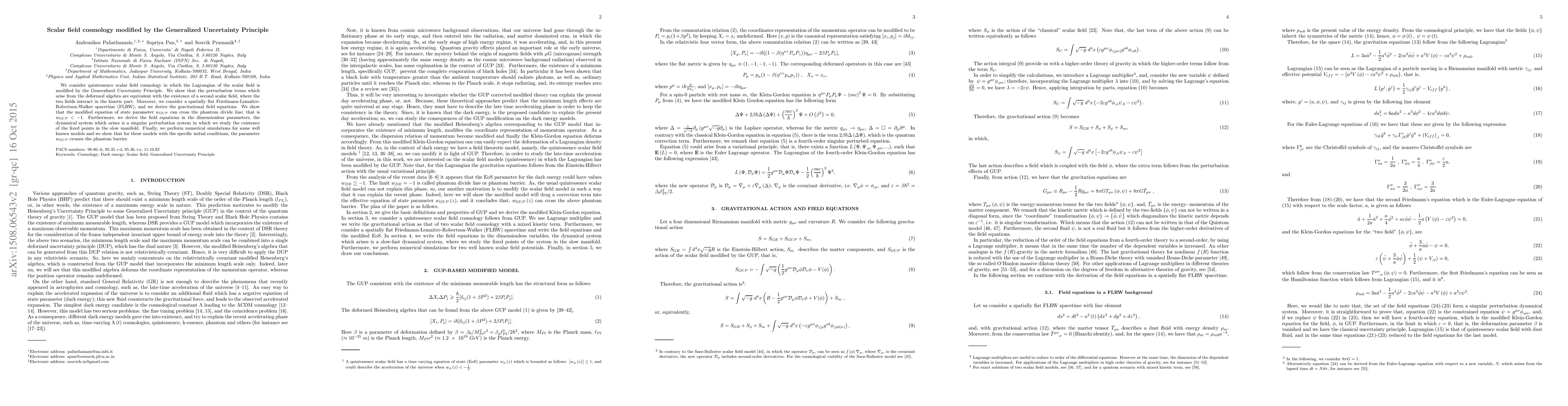 This paper explores quintessence scalar field cosmology modified by the Generalized Uncertainty Principle, showing that perturbation terms lead to interactions between two scalar fields. It demonstrates that the modified equation of state parameter $w_{GUP}$ can cross the phantom divide, and performs numerical simulations confirming this behavior under specific initial conditions.
