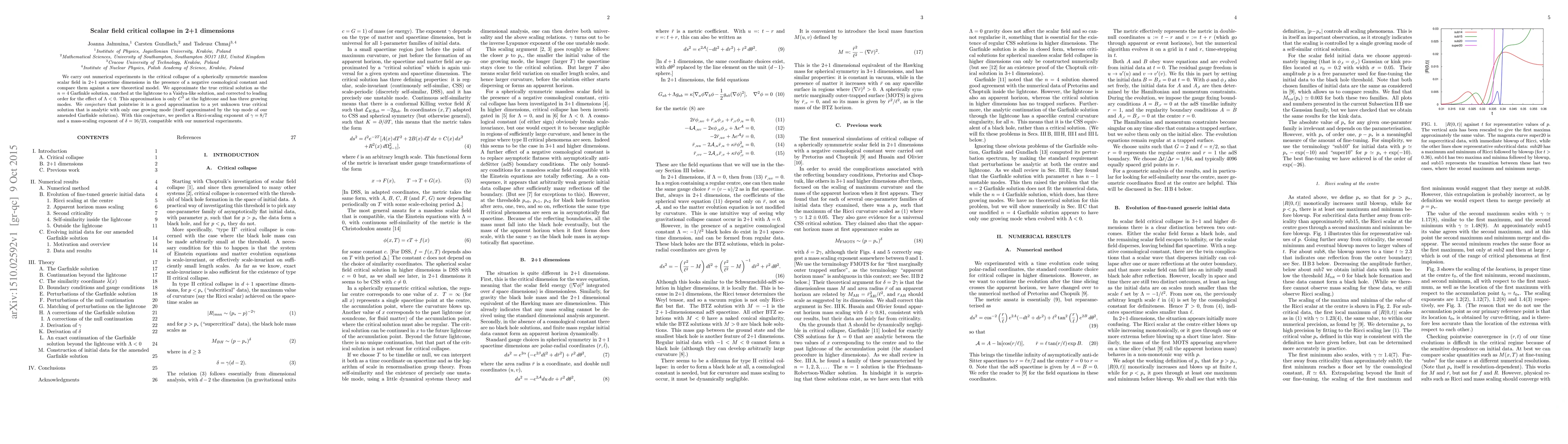 This research paper investigates the critical collapse of a scalar field in 2+1 dimensions with a negative cosmological constant, making predictions for Ricci-scaling and mass-scaling exponents based on numerical experiments and theoretical models.