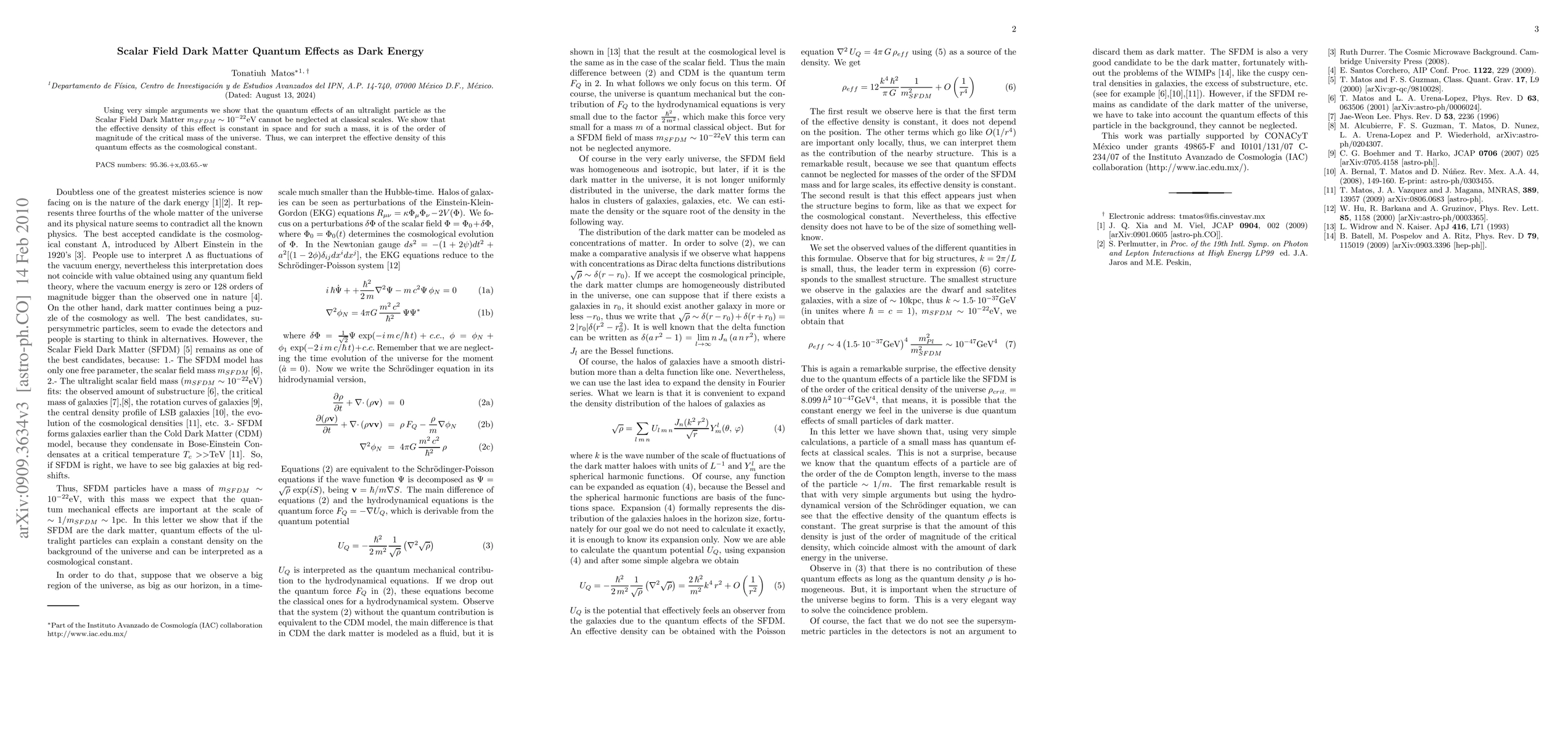 Research suggests that ultra-light particles like Scalar Field Dark Matter could contribute to dark energy as their quantum effects can't be neglected at classical scales.