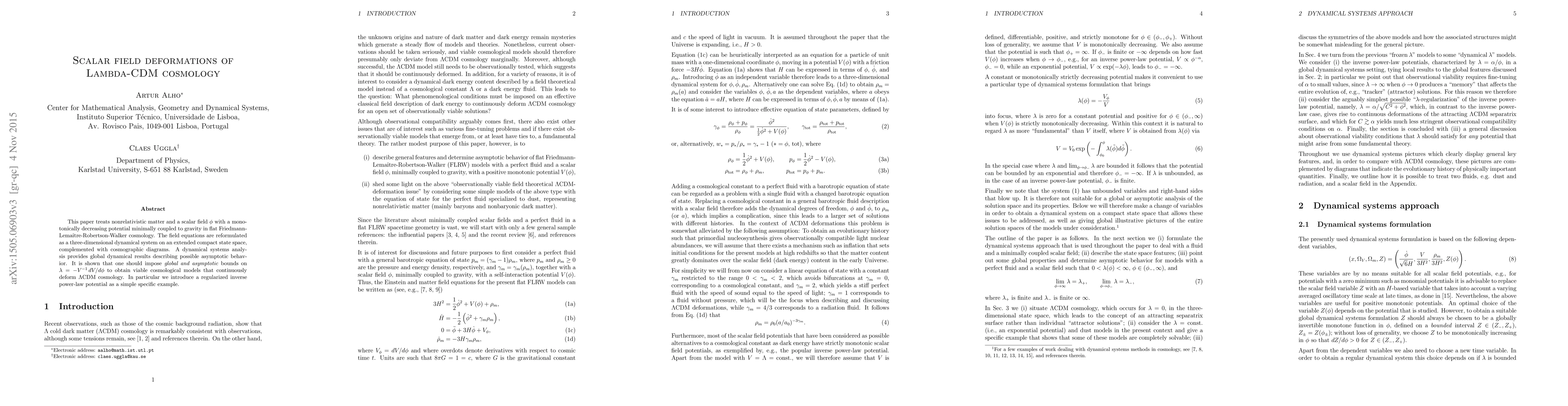 This paper explores scalar field deformations of Lambda-CDM cosmology by introducing a scalar field with a monotonically decreasing potential and analyzing its impact on flat FLRW cosmology. The study employs dynamical systems analysis to derive global asymptotic bounds on the field's potential, demonstrating the necessity for viable cosmological models that can continuously modify the standard Lambda-CDM model.