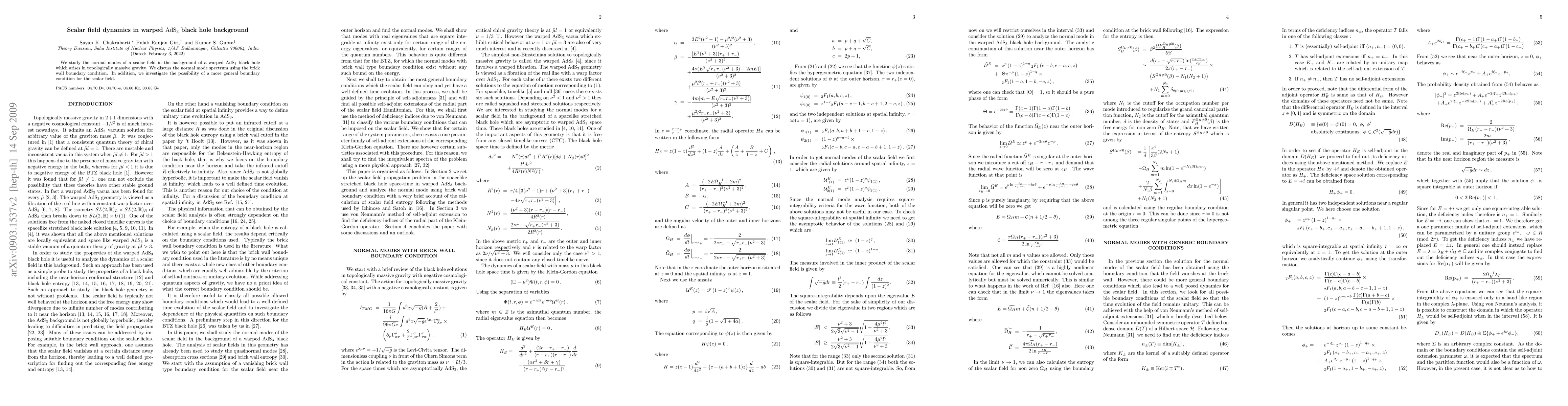This paper explores the normal modes of a scalar field in a warped AdS_3 black hole background from topologically massive gravity, employing the brick wall boundary condition to analyze the mode spectrum and considering alternative boundary conditions for the scalar field.