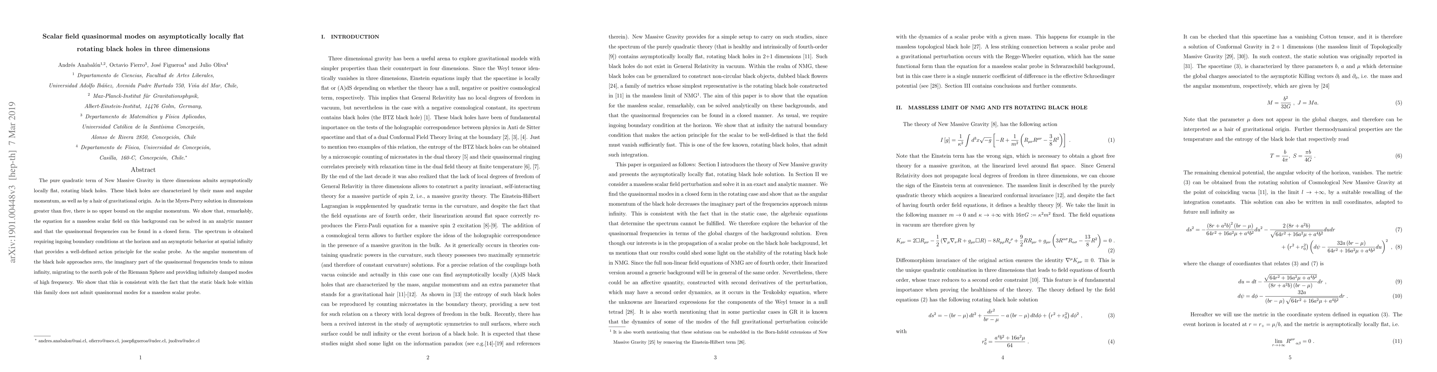The pure quadratic term of New Massive Gravity in three dimensions admits asymptotically locally flat, rotating black holes. These black holes are characterized by their mass and angular momentum, as well as by a hair of gravitational origin. As in the Myers-Perry solution in dimensions greater than five, there is no upper bound on the angular momentum. We show that, remarkably, the equation for a massless scalar field on this background can be solved in an analytic manner and that the quasinormal frequencies can be found in a closed form. The spectrum is obtained requiring ingoing boundary conditions at the horizon and an asymptotic behavior at spatial infinity that provides a well-defined action principle for the scalar probe. As the angular momentum of the black hole approaches zero, the imaginary part of the quasinormal frequencies tends to minus infinity, migrating to the north pole of the Riemann Sphere and providing infinitely damped modes of high frequency. We show that this is consistent with the fact that the static black hole within this family does not admit quasinormal modes for a massless scalar probe.