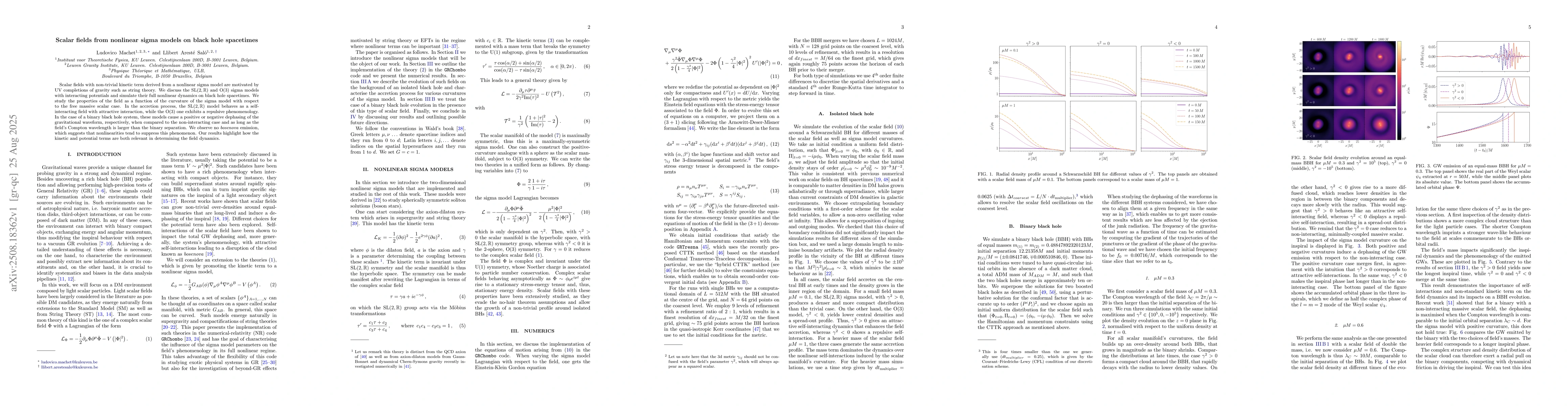 Scalar fields with non-trivial kinetic term derived from a nonlinear sigma model are motivated by UV completions of gravity such as string theory. We discuss the $\mathrm{SL}(2,\mathbb{R})$ and $\mathrm{O}(3)$ sigma models with interacting potentials and simulate their full nonlinear dynamics on black hole spacetimes. We study the properties of the field as a function of the curvature of the sigma model with respect to the free massive scalar case. In the accretion process, the $\mathrm{SL}(2,\mathbb{R})$ model behaves as a self-interacting field with attractive interaction, while the $\mathrm{O}(3)$ one exhibits a repulsive phenomenology. In the case of a binary black hole system, these models cause a positive or negative dephasing of the gravitational waveform, respectively, when compared to the non-interacting case and as long as the field's Compton wavelength is larger than the binary separation. We observe no bosenova emission, which suggests that nonlinearities tend to suppress this phenomenon. Our results highlight how the kinetic and potential terms are both relevant in determining the field dynamics.