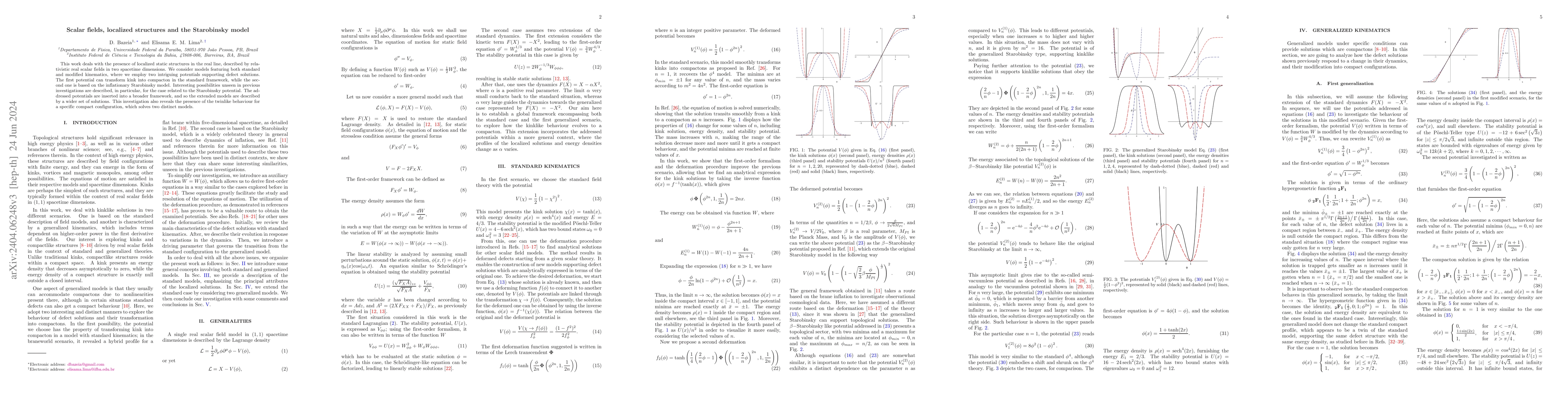 This work deals with the presence of localized static structures in the real line, described by relativistic real scalar fields in two spacetime dimensions. We consider models featuring both standard and modified kinematics, where we employ two intriguing potentials supporting defect solutions. The first potential can transform kink into compacton in the standard framework, while the second one is based on the inflationary Starobinsky model. Interesting possibilities unseen in previous investigations are described, in particular, for the case related to the Starobinsky potential. The addressed potentials are inserted into a broader framework, and so the extended models are described by a wider set of solutions. This investigation also reveals the presence of the twinlike behavior for a specific compact configuration, which solves two distinct models.