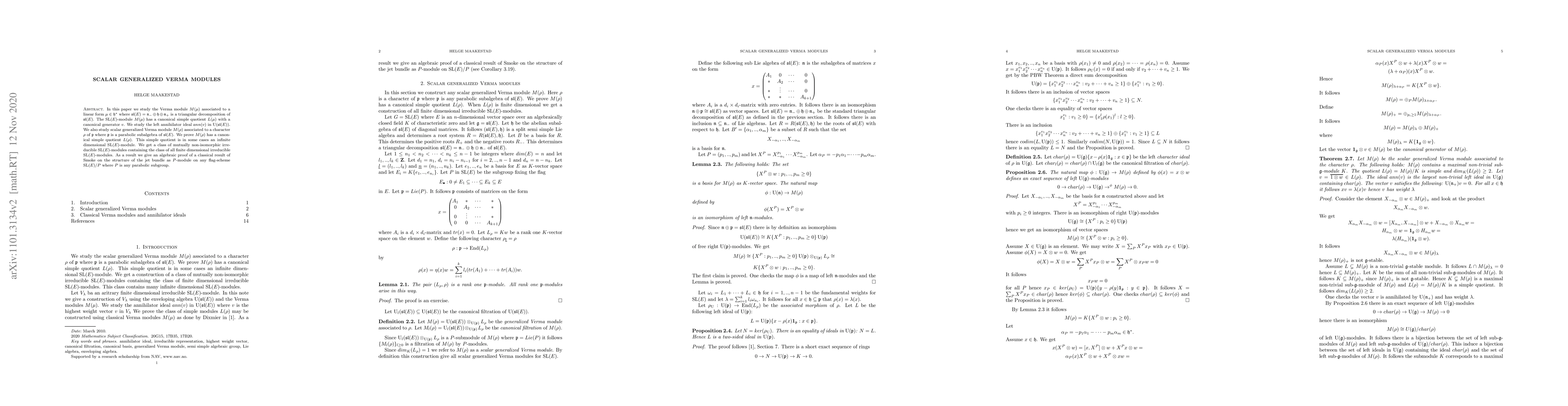 In this paper we study the scalar generalized Verma module $M$ associated to a character of a parabolic subgroup of $\operatorname{SL}(E)$. Here $E$ is a finite dimensional vector space over an algebraically closed field $K$ of characteristic zero. The Verma module $M$ has a canonical simple quotient $L$ with a canonical filtration $F$. In the case when the quotient $L$ is finite dimensional we use left annihilator ideals in $U(\mathfrak{sl}(E))$ and geometric results on jet bundles to generalize to an algebraically closed field of characteristic zero a classical formula of W. Smoke on the structure of the jet bundle of a line bundle on an arbitrary quotient $\operatorname{SL}(E)/P$ where $P$ is a parabolic subgroup of $\operatorname{SL}(E)$. This formula was originally proved by Smoke in 1967 using analytic techniques.