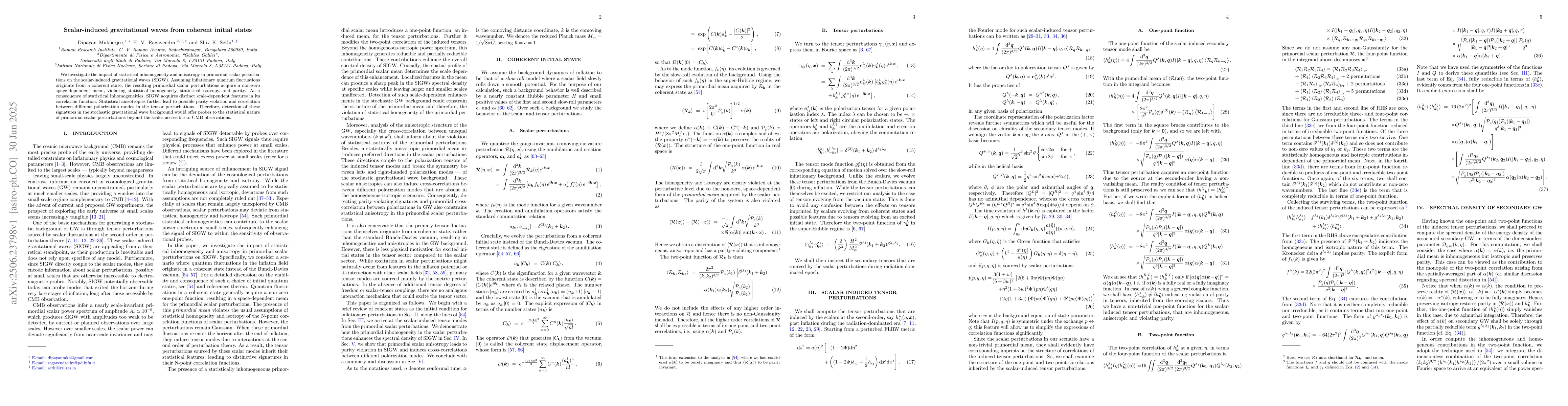 We investigate the impact of statistical inhomogeneity and anisotropy in primordial scalar perturbations on the scalar-induced gravitational waves (SIGW). Assuming inflationary quantum fluctuations originate from a coherent state, the resulting primordial scalar perturbations acquire a non-zero space-dependent mean, violating statistical homogeneity, statistical isotropy, and parity. As a consequence of statistical inhomogeneities, SIGW acquires distinct scale-dependent features in its correlation function. Statistical anisotropies further lead to possible parity violation and correlation between different polarization modes in the tensor perturbations. Therefore, detection of these signatures in the stochastic gravitational wave background would offer probes to the statistical nature of primordial scalar perturbations beyond the scales accessible to CMB observations.