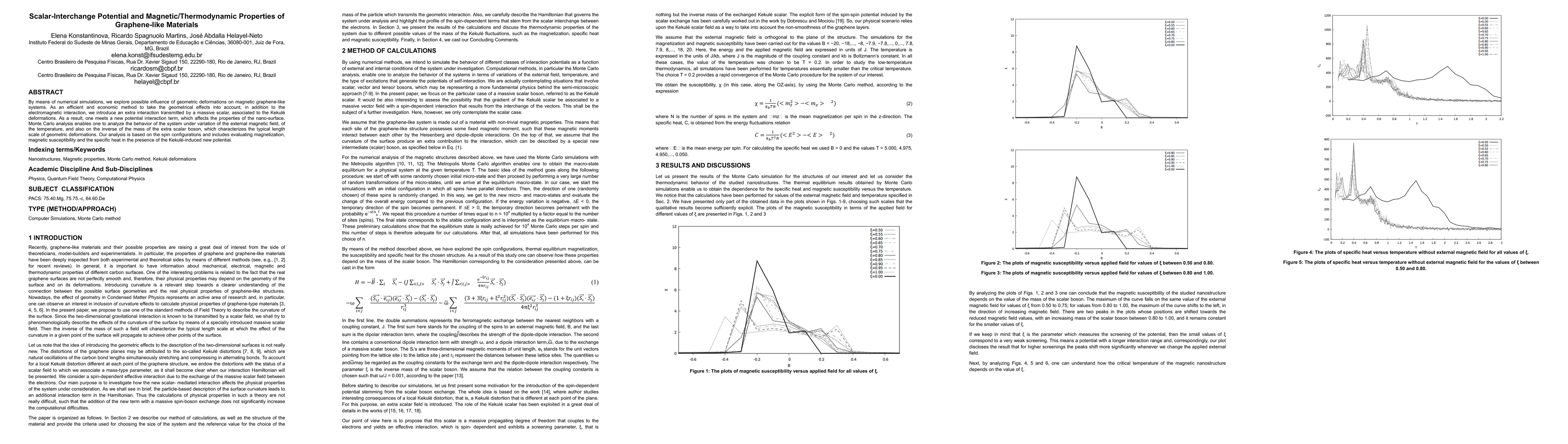 This paper investigates the impact of a scalar-interchange potential, linked to Kekulé deformations, on the magnetic and thermodynamic properties of graphene-like materials through numerical simulations. The study reveals significant effects on the system's spin configurations, thermal equilibrium magnetization, magnetic susceptibility, and specific heat due to this new spin-dependent interaction.