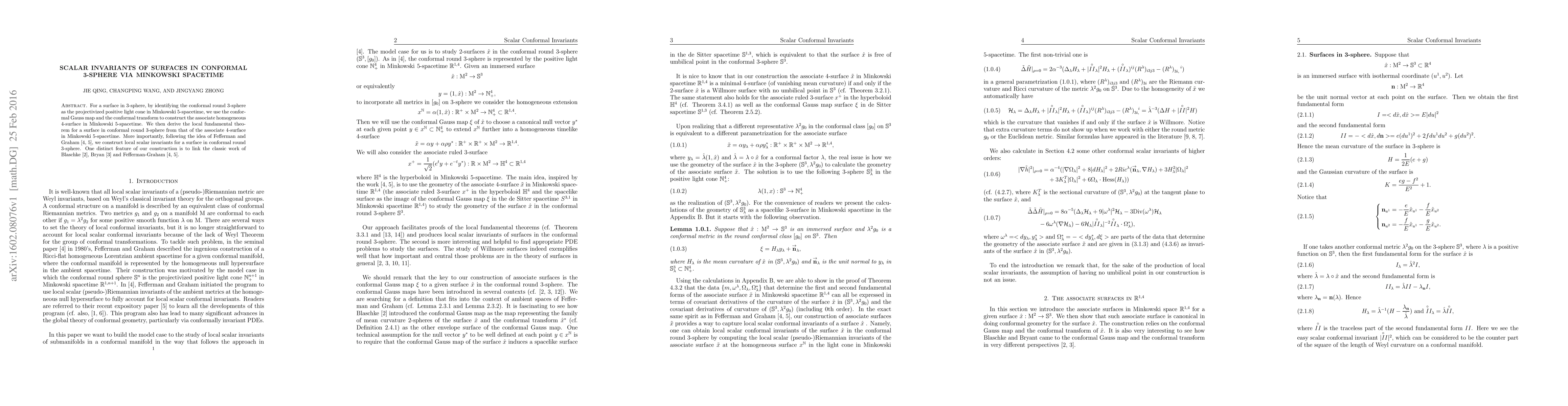 This paper constructs local scalar invariants for surfaces in the conformal 3-sphere by identifying the sphere with the projectivized positive light cone in Minkowski 5-spacetime, leveraging the conformal Gauss map and transform. It links classical Blaschke work with modern Fefferman-Graham methods.