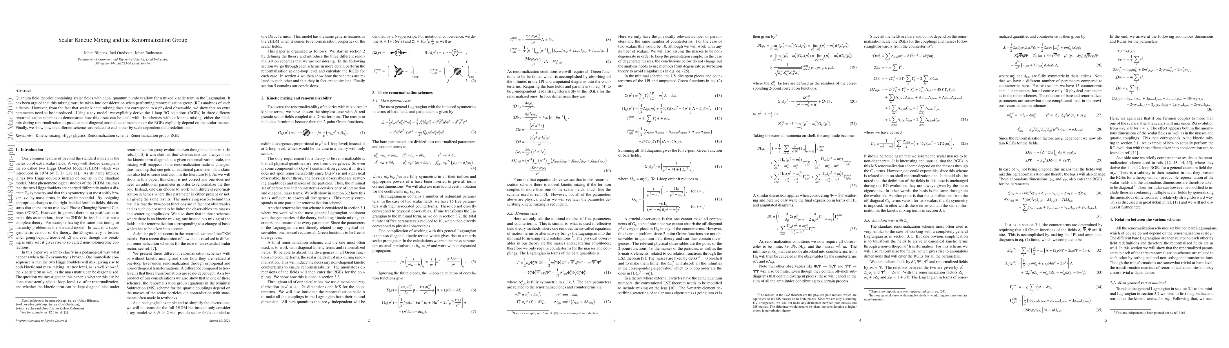 This paper investigates scalar kinetic mixing in quantum field theories and demonstrates that despite its presence, no additional parameters are required for renormalization group analyses. It derives 1-loop RGEs in various schemes, showing how kinetic mixing can be managed without introducing new parameters.